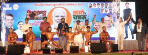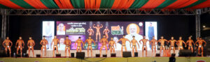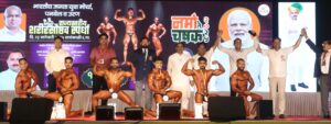भारतीय जनता युवा मोर्चा पनवेल व उरणच्या वतीने २३ ते २५ जानेवारी पर्यंत ‘भव्य क्रीडा महोत्सव’ अर्थात ‘नमो चषक २०२५’ चे भव्य दिव्य आयोजन उलवा नोडमधील सेक्टर १२ येथील रामशेठ ठाकूर पब्लिक स्कुलच्या मागील बाजूच्या मैदानावर अर्थात लोकनेते रामशेठ ठाकूर क्रीडा नगरीत करण्यात आले आहे. त्याचाच एक भाग असलेली राज्यस्तरीय शरीर सौष्ठव स्पर्धा उत्स्फूर्तपणे व उत्कृष्ट नियोजनात आणि क्रीडा रसिकांच्या उपस्थितीत जल्लोषात पार पडली. या स्पर्धेसाठी प्रमुख मान्यवर म्हणून पनवेल विधानसभा मतदार संघाचे आमदार प्रशांत ठाकूर, महाराष्ट्र बॉडी बिल्डर्स असोसिएशनचे कार्याध्यक्ष डॉ. संजय मोरे, सरचिटणीस अजय खानविलकर, पनवेल महानगरपालिकेचे माजी सभागृहनेते व नमो चषक स्पर्धेचे मुख्य आयोजक परेश ठाकूर, भाजपचे जिल्हा सरचिटणीस नितीन पाटील, पनवेल शहर अध्यक्ष अनिल भगत, कामोठे अध्यक्ष रवींद्र जोशी, पनवेल महापालिकेचे माजी स्थायी समिती सभापती अमर पाटील, माजी स्थायी समिती सभापती अजय बहिरा, अमर म्हात्रे, विजय घरत, जयवंत देशमुख, भार्गव ठाकूर, अंकुश ठाकूर, विश्वनाथ कोळी, स्वप्नील ठाकूर, शैलेश भगत, स्पर्धा समन्वयक मयुरेश नेतकर, शरीरसौष्ठव स्पर्धा संयोजक दिनेश शेळके, विचुंबे ग्रापंचायतीचे सरपंच प्रमोद भिंगारकर यांच्यासह अनेक मान्यवर उपस्थित होते.