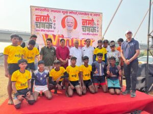 भारताची राष्ट्रीय विक्रमवीर आणि आशियातील सर्वोत्कृष्ट धावपटू ललिता बाबर यांनी उलवा नोडमध्ये सुरु असलेल्या नमो चषक स्पर्धेला सदिच्छा भेट दिली. यावेळी माजी खासदार लोकनेते रामशेठ ठाकूर, ज्येष्ठ नेते वाय. टी. देशमुख यांनी त्यांचे स्वागत केले. यावेळी ललिता बाबर यांनी या स्पर्धेच्या भव्य आणि दर्जेदार आयोजनाबद्दल कौतुक केले. त्यांच्या या भेटीने खेळाडूंमध्ये स्फूर्तीचे वातावरण निर्माण झाले. त्यांच्या हस्ते स्पर्धेतील विजेत्यांना बक्षिसे देऊन सन्मानित करण्यात आले. यावेळी कबड्डी प्रशिक्षक शरद कदम, स्वप्नील ठाकूर,युवा मोर्चाचे जिल्हाध्यक्ष मयुरेश नेतकर, दिनेश खानावकर, देवांशू प्रभाळे, सुधीर ठाकूर, धीरज उलवेकर यांच्यासह इतर मान्यवर उपस्थित होते.