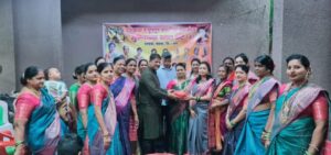 ठाणे प्रतिनिधी : दिनांक २५ जानेवारी २०२५ रोजी दुपारी ठीक ४ वाजता कळवा ठाणे येथे हळदी कुंकू कार्यक्रम समारंभ आयोजित करण्यात आला होता. या हळदी कुंकू कार्यक्रम समारंभाला संस्थेच्या अधक्षा सौ वंदना ताई गौरी यांचा सत्कार संस्थेचे प्रमुख सल्लागार श्री संतोष म्हात्रे यांच्या हस्ते करण्यात आला. या कार्यक्रमात बचत गट अध्यक्ष मीना गौरी, सचिव मोनाली घरत खजिनदार अश्विनी कारंडे भुमी कन्या आणि भुमी पुत्र सामाजिक सेवा संस्था अध्यक्षा आणि भुमी कन्या बचत गट सल्लागार वंदना गौरी प्रमुख पाहुणे म्हणून भुमी कन्या ऍडव्होकेट प्रमुख मान्यवर चेतन कीणी मॅडम, भुमी कन्या आणि भुमी पुत्र सामाजिक सेवा संस्था कळवा ठाणे प्रमूख सल्लागार श्री संतोष म्हात्रे,संस्थेच्या कायदेशीर सल्लागार ऍडव्होकेट वीरा म्हात्रे पाटील, आणि प्रमुख अतिथी श्री अनिल दादा गावंड विश्वस्त मरू आई मंदिर ट्रस्ट माटुंगा,आणि कळवा पोलीस स्टेशनच्या महिला अधिकारी देखील उपस्थित होत्या.