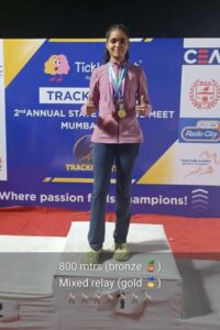 उरण प्रतिनिधी : विठ्ठल ममताबादे : मुंबई येथे अथलेटिक्स स्पोर्ट्स फॉउंडेशनच्या माध्यमातून राज्यस्तरीय ट्रॅक नाईट्स स्पर्धेचे आयोजन करण्यात आले होते. या स्पर्धेत उरण तालुक्यातील नागाव ग्रामपंचायतचे ग्रामविकास अधिकारी किरण केणी यांची कन्या श्रावणी केणी हिने धावण्याच्या स्पर्धेत ८०० मीटर मध्ये ब्राँझ पदक तर सांघिक रिले मध्ये गोल्ड मेडल पटकाविले आहे. तसेच श्रावणी हिने उलवे येथे झालेल्या राज्यस्तरीय नमो चषक स्पर्धे मध्ये १०० मीटर धावण्याच्या स्पर्धेत सिल्वर मेडल पटकाविले आहे.श्रावणी किरण केणी हिने केलेल्या क्रीडा क्षेत्रातील नेत्रदीपक कामगिरीमुळे तीचे सर्वत्र कौतुक होत असून सर्वच स्तरातून तिच्यावर शुभेच्छा व अभिनंदनाचा वर्षाव होत आहे.