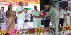पनवेल प्रतिनिधी : जनार्दन भगत शिक्षण प्रसारक संस्थेच्या खांदा कॉलनी येथील चांगु काना ठाकूर आर्टस्, कॉमर्स अँड सायन्स महाविद्यालयाचा (स्वायत्त) वार्षिक पारितोषिक वितरण समारंभ आणि दर्पण २०२४-२५ सोहळा मोठ्या उत्साहात संपन्न झाला. या प्रसंगी पहिल्या सत्रात विद्यार्थ्यांचे विशेष अभिनंदन करण्यासाठी प्रमुख अतिथी म्हणून सातारा येथील कर्मवीर भाऊराव पाटील विद्यापीठाचे कुलगुरू प्रो. डॉ. ज्ञानदेव म्हस्के, जनार्दन भगत शिक्षण प्रसारक संस्थेचे चेअरमन माजी खासदार लोकनेते रामशेठ ठाकूर यांची विशेष उपस्थिती लाभली.