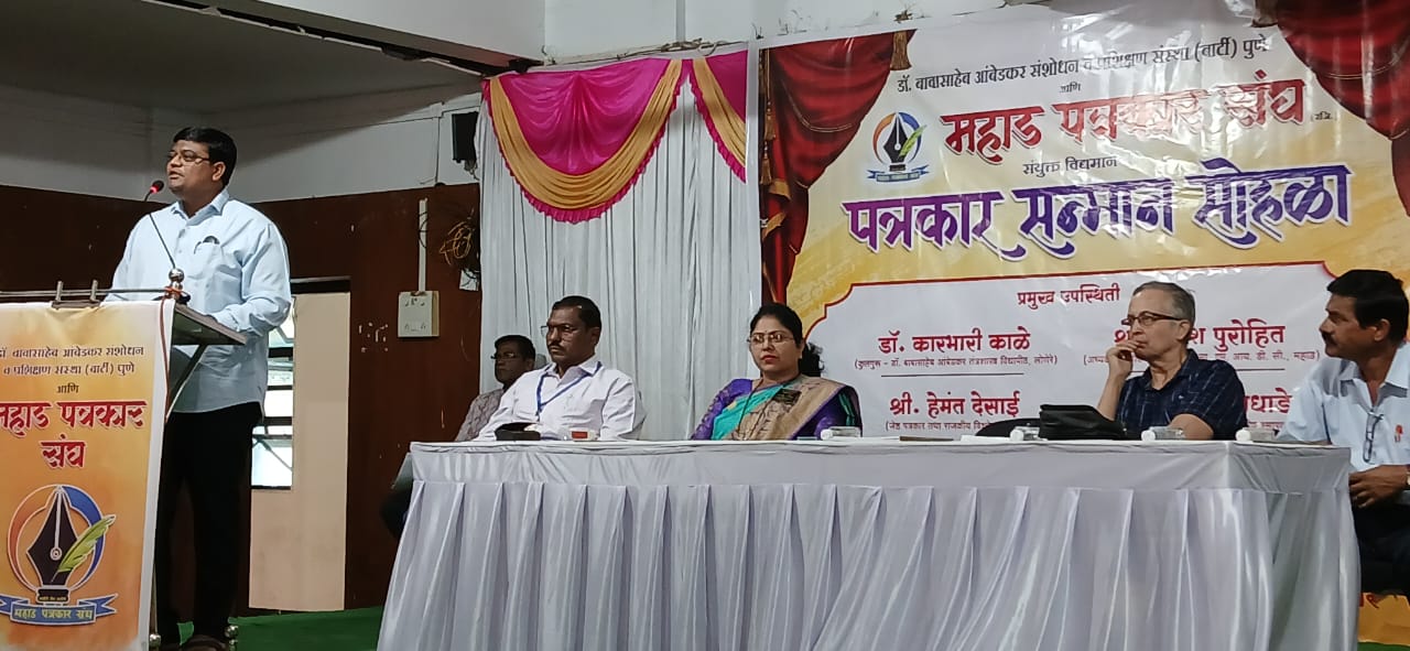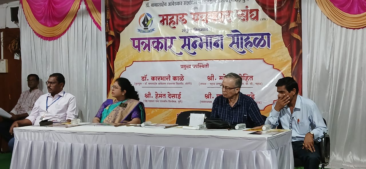 महाड पत्रकार संघ आयोजित पत्रकार सन्मान सोहळ्या प्रसंगी प्रमुख अतिथी म्हणून हेमंत देसाई बोलत होते. भारतरत्न डॉ. बाबासाहेब आंबेडकर संशोधन व प्रशिक्षण संस्था आणि महाड पत्रकार संघ यांच्यामार्फत आयोजित केलेल्या पत्रकार सन्मान सोहळा या नेत्र दीपक सोहळ्या प्रसंगी व्यासपीठावर वन खात्याचे वन क्षेत्रपाल राकेश साहू, रोटरी क्लब ऑफ रायगड फोर्ट च्या मनीषा नगरकर, राष्ट्रीय स्मारक व्यवस्थापक प्रकाश जमधाडे, महाड पत्रकार संघाचे अध्यक्ष निलेश पवार आदी मान्यवर उपस्थित होते. यांच्यासह ऐतिहासिक महाड नगरीतील पत्रकार, सामाजिक क्षेत्रातील अनेक मंडळी उपस्थित होती.