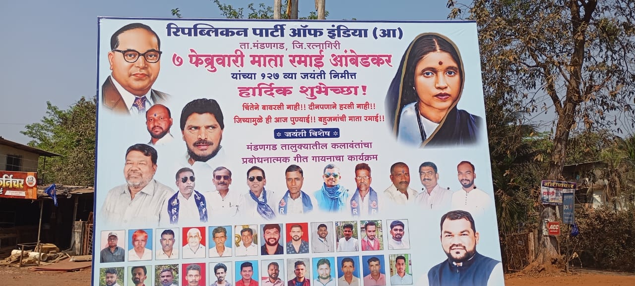 महाड : गुरूवार दिनांक ०७ फेब्रुवारी २०२५ रोजी माता रमाई आंबेडकर यांच्या १२७ वी जयंती निमित्त पुर्ण महाराष्ट्रातूनच नाही तर देशाच्या कानाकोप-यातून माता रमाईंच्या मुळ गावी वनंद दापोली व महामानव , विश्वरत्न डॉ बाबासाहेब आंबेडकर यांच्या मुळगावी आंबडवे मंडणगड येथे आंबेडकरी अनुयायी मोठ्या संखेने येत आहेत त्यांना दिनांक ६ व ७ फेब्रुवारी दोन दिवस पीण्याचे पाणी, अल्पोपहार, जेवणाची , मनोरंजनासाठी व प्रबोधनासाठी कव्वाली, आणि मोफत वैद्यकीय सुविधा ई. व्यवस्था रिपब्लिकन पार्टी ऑफ इंडिया आठवले गट मंडणगड च्या वतीने दापोली फाटा येथे महाराष्ट्र कमीटी सदस्य आद. दादा साहेब मर्चंडे, रत्नागिरी जिल्हा सचिव आद. आदेशभाऊ मर्चंडे, तालूका आध्यक्ष आद. नागसेन तांबे व मंडणगड गटाचे सर्व सदस्य यांच्या आथक प्रयत्नाने पार पाडण्यात आला.
