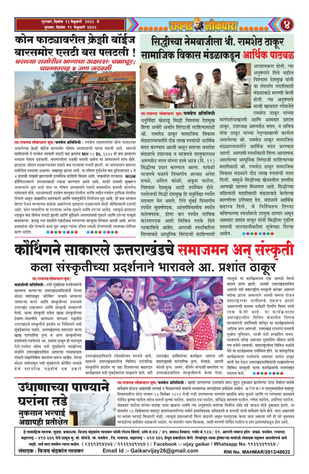 Uncategorized रायगड लोकधारा न्यूज पेपर गुरुवार दि. 13 फेब्रुवारी २०२५ ते बुधवार दि. १९ फेब्रुवारी २०२५ विजय चंद्रकांत गायकर February 13, 2025 Post navigation Previous जनजागृती सेवा संस्थेच्या वतीने शिर्के वाडी,मौजे.कोंडमळा येथील स्मशानभूमीचे सुशोभिकरण-लोकार्पण सोहळा संपन्न..!Next रायगड लोकधारा न्यूज पेपर Related Stories ध्येयावर लक्ष इतर गोष्टींवर नव्हे तर आपल्या ध्येयावर लक्ष केंद्रीत करा व त्यालाच प्राधान्य द्या … Uncategorized ध्येयावर लक्ष इतर गोष्टींवर नव्हे तर आपल्या ध्येयावर लक्ष केंद्रीत करा व त्यालाच प्राधान्य द्या … December 2, 2025 Test Uncategorized Test November 24, 2025 tt Uncategorized tt November 17, 2025
