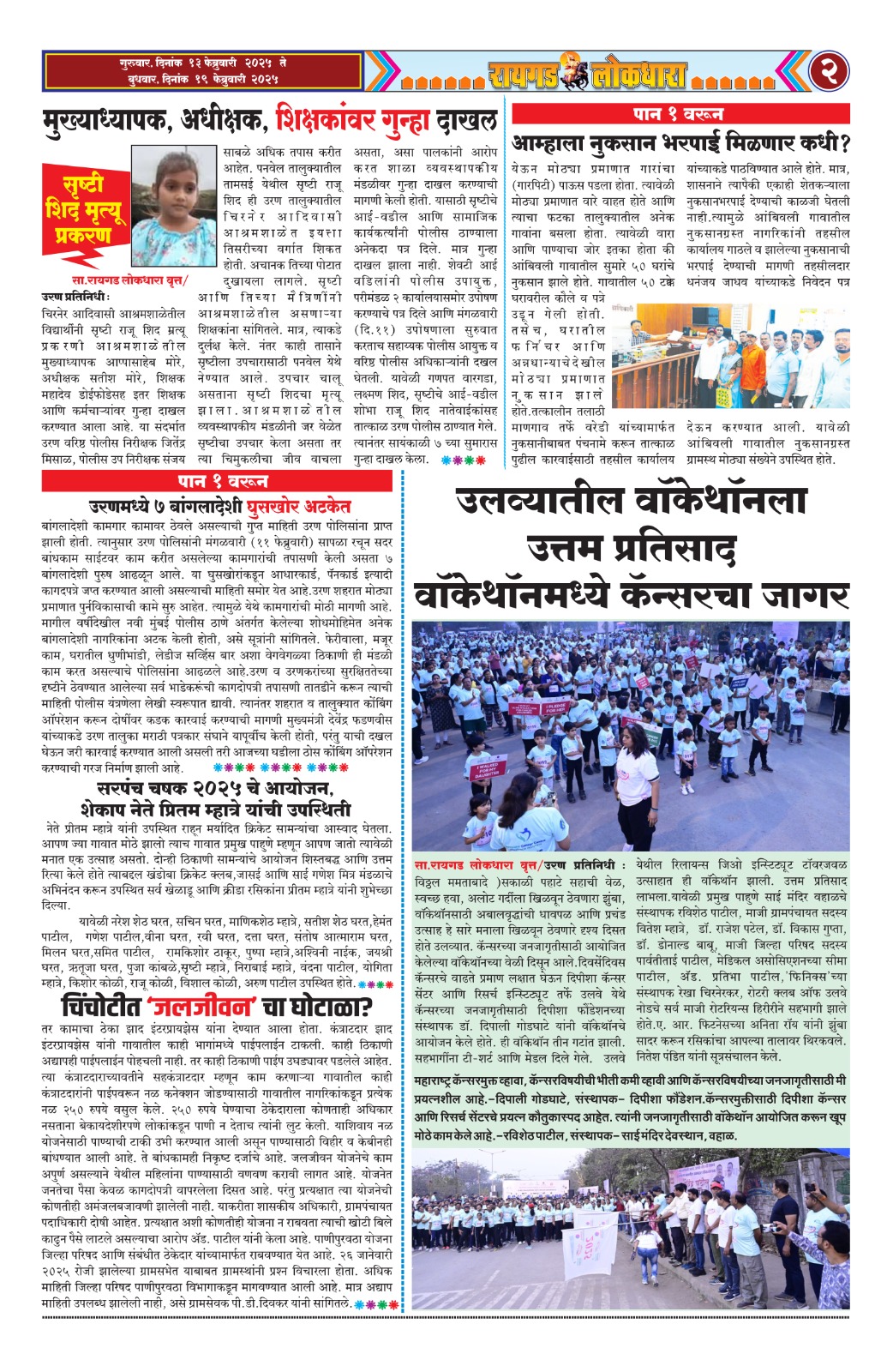 Uncategorized रायगड लोकधारा न्यूज पेपर विजय चंद्रकांत गायकर February 13, 2025 Post navigation Previous रायगड लोकधारा न्यूज पेपर गुरुवार दि. 13 फेब्रुवारी २०२५ ते बुधवार दि. १९ फेब्रुवारी २०२५Next मोहोप्रे गावच्या हद्दीत सोनगडाच्या पायथ्याशी पुरातन पादुका सापडल्या Related Stories “बालमनाचे जादूगार-राजाभाऊ मंगळवेढेकर यांच्या स्मृती दिनानिमित्त विनम्र अभिवादन..! Uncategorized “बालमनाचे जादूगार-राजाभाऊ मंगळवेढेकर यांच्या स्मृती दिनानिमित्त विनम्र अभिवादन..! April 1, 2026 मुंबई- गोवा महामार्ग पूर्ण नाही झाला, तरीही तीन टोलनाके ? खारपाडा, खांब, लोहारे Uncategorized मुंबई- गोवा महामार्ग पूर्ण नाही झाला, तरीही तीन टोलनाके ? खारपाडा, खांब, लोहारे March 22, 2026 महेंद्रशेठ घरत यांचा जगभ्रमंती केल्याबद्दल साई मंदिरतर्फे सन्मान ! Uncategorized महेंद्रशेठ घरत यांचा जगभ्रमंती केल्याबद्दल साई मंदिरतर्फे सन्मान ! March 22, 2026