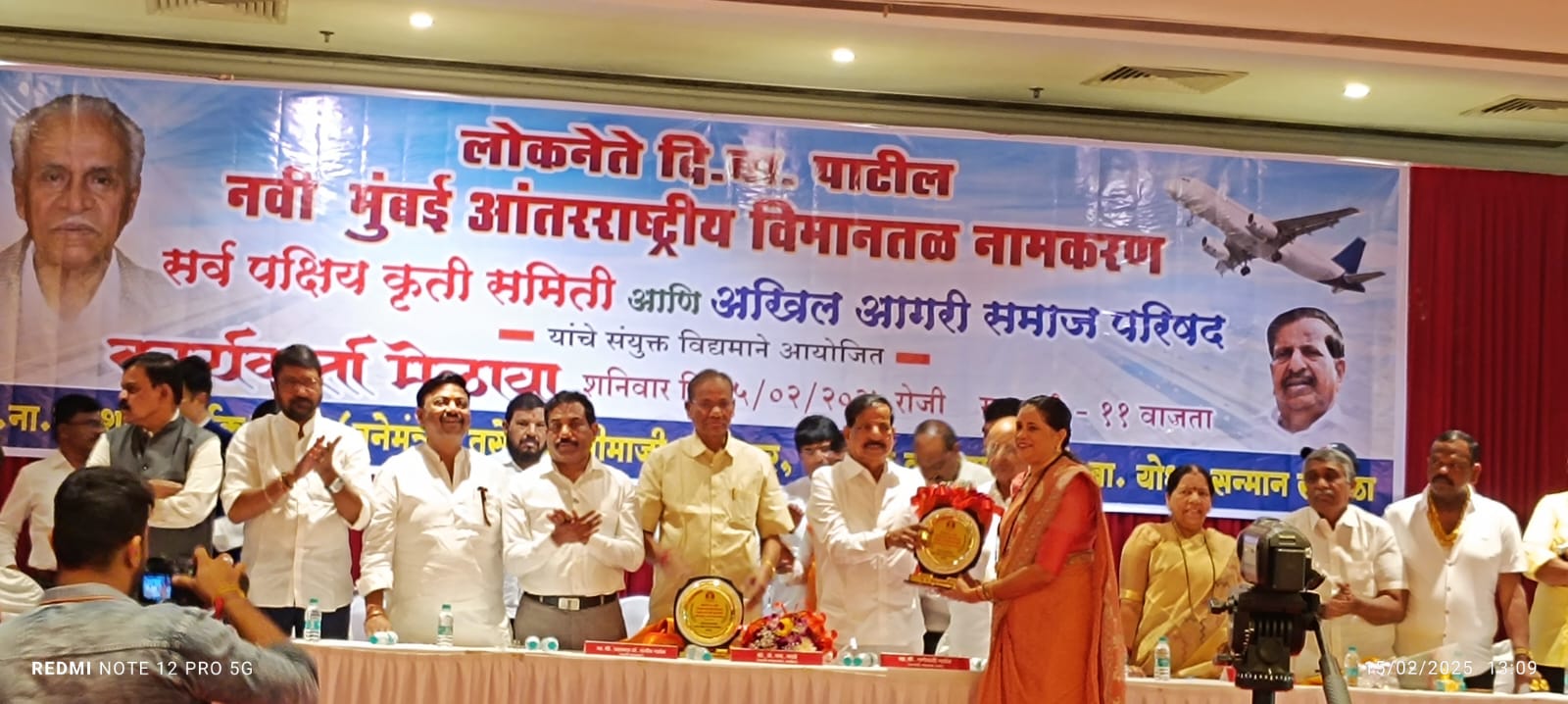 उरण दि. १७ (विठ्ठल ममताबादे ) – लोकनेते दि.बा.पाटील नवी मुंबई आंतरराष्ट्रीय विमानतळ नामकरण सर्व पक्षीय कृती समिती आणि अखिल आगरी समाज परिषद या मेळाव्यात महाराष्ट्रचे वनमंत्री राज्य मंत्री गणेश नाईक यांच्या हस्ते उरण तालुका महिला काँग्रेस अध्यक्षा रेखा घरत यांनी नवी मुंबई आंतरराष्ट्रीय विमानतळा साठी आंदोलन मध्ये सहभाग घेतला म्हणून त्यांना दि.बा.पाटील योध्दा सन्मानचिन्ह पुरस्कार देऊन सन्मानित करण्यात आले. रेखा घरत या राजकारण व समाजकारण मध्ये सक्रिय आहेत. विविध आंदोलने , संप मध्ये त्यांचा महत्वाचा सहभाग असतो. महिलांच्या अनेक समस्या त्यांनी सोडविल्या आहेत.तसेच लोकनेते दिबा पाटील नवी मुंबई आंतरराष्ट्रीय विमानतळ चळवळीत त्या सक्रिय होत्या.त्यामुळे त्यांना पुरस्कार देऊन गौरविण्यात आले.पुरस्कार मिळाल्याने सर्वच स्तरातून त्यांच्यावर शुभेच्छा व अभिनंदनाचा वर्षाव होत आहे.