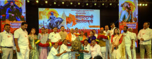 पनवेल (प्रतिनिधी) : उलवा नोडमधील रामशेठ ठाकूर मैदानावर छत्रपती शिवाजी महाराज जयंतीनिमित्त आयोजित करण्यात आलेल्या “महाराष्ट्राची महासंस्कृती” या कार्यक्रमात महाराष्ट्राच्या लोककला, लोकसंगीत, कोळीगीत, गणगवळणी, लावणी, पालखी, अभंग, पोवाडा, बहुरंगी संगीत आणि नृत्य रचनांनी मंत्रमुग्ध होतानाच विशेषतः यावेळी सादर झालेला “शिवराज्याभिषेक सोहळा” उपस्थितांना महाराजांच्या सुवर्णकाळाचा अनुभव देऊन गेला. त्या अनुषंगाने महाराष्ट्राच्या लोकसंस्कृतीवर आधारित या मराठमोळ्या कलाविष्कारातून छत्रपती शिवरायांना अभिवादन करण्यात आले. या कार्यक्रमाचे आयोजन छत्रपती शिवाजी महाराज अश्वारूढ पुतळा उभारणी व सुशोभीकरण समितीच्यावतीने समितीचे अध्यक्ष लोकनेते रामशेठ ठाकूर यांच्या मार्गदर्शनाखाली मोठ्या उत्साहात आणि भव्य दिव्य स्वरूपात करण्यात आले होते.