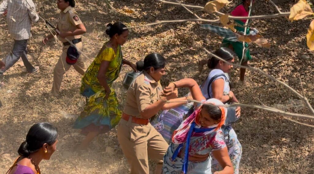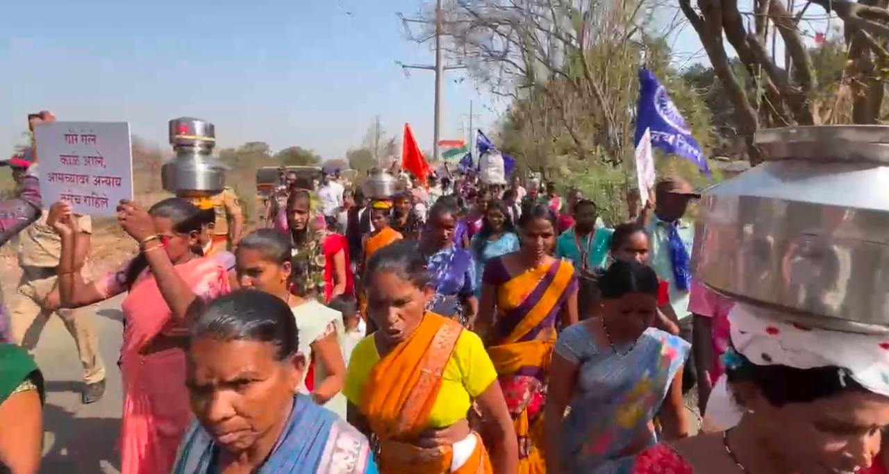 मात्र या दगड खाणीवर कोणताही परिणाम झाला नाही शेवटी 5 मार्च 2025 रोजी टेंभोडे आदिवासीवाडी, वळवली सागाचीवाडी, वाघऱ्याचीवाडी येथील आदिवासी बांधवांनी मा. मुख्यमंत्री देवेंद्र फडणवीस यांच्या निवासस्थानी व मंत्रालयासमोर आपल्या परिवारासह आत्मदहन करण्याचे पत्र पोलीस विभागाला व संबंधित विभागाला दिले होते. आज शेकडो आदिवासी बांधव मा. मुख्यमंत्री देवेंद्र फडणवीस यांच्या निवासस्थानी पायी जात असताना खांदेश्वर पोलीस विभागाने अडवण्याचा प्रयत्न केला. मात्र आमच्या मागण्या पूर्ण करा, नाहीतर बेकायदेशीर चालवत असणाऱ्या दगड खाणीच्या मालकावर गुन्हे दाखल करा परंतु संबंधित सिडको व महसूल विभागाच्या लातूर-मातूर आश्वासनाने येथील आदिवासी बांधव आक्रमक झाले. नंतर पोलीस आणि आदिवासी बांधवांमध्ये संघर्षाची ठिणगी पडली; या संघर्षामध्ये आदिवासी महिलांना धक्काबुक्की लागली तर काही आदिवासी महिलांचे कपडे फाटल्याने पुरुष पोलिसांवर आदिवासींचा अधिक आक्रोश पाहायला मिळाला मात्र जमीन हक्क परिषद महाराष्ट्र राज्याचे माऊली सोनवणे यांच्या मध्यस्थीतीने आदिवासी बांधव आणि पोलिसांमधला संघर्ष मिटवण्यात आला.