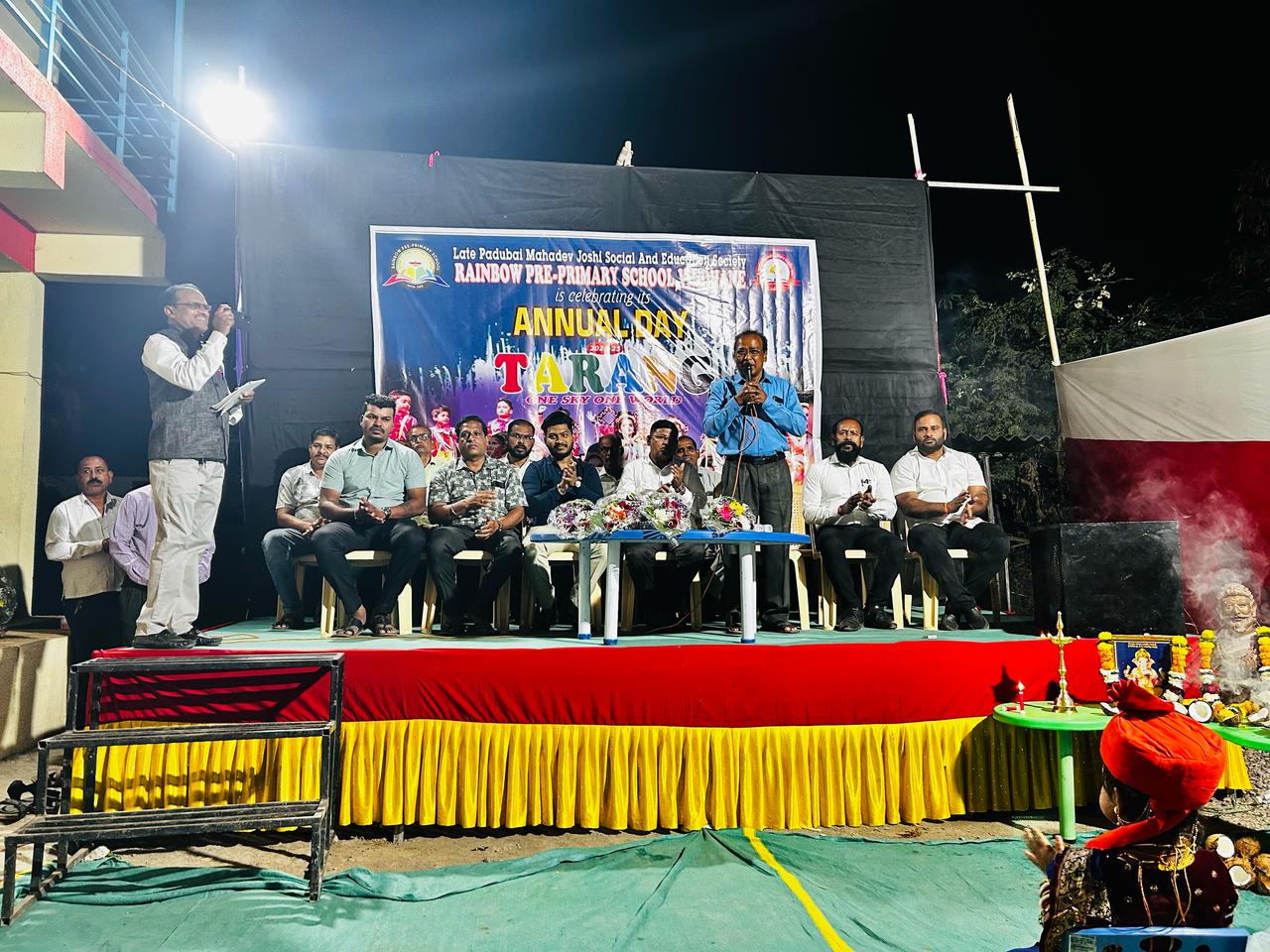 उरण प्रतिनिधी : विठ्ठल ममताबादे :- स्वर्गीय पदूबाई महादेव जोशी सोशल अँड एज्युकेशनल सोसायटी टाकीगांव ट्रस्ट अंतर्गत स्थापन झालेल्या रेनबो प्री प्रायमरी स्कूल विंधणे येथे वार्षिक स्नेह संमेलन उत्साहात संपन्न झाला. संस्थापक/अध्यक्ष मंगेश दामोदर जोशी यांच्या मार्गदर्शनाखाली हे स्नेह संमेलन मोठया उत्साहात संपन्न झाले. दिनांक १६/३/२०२५ रोजी संपन्न झालेल्या या कार्यक्रमाची थीम ‘तरंग’ अशी होती. या उपक्रमात विद्यार्थ्यांनी मोठया उत्साहात मोठया प्रमाणात सहभाग घेतला. अत्यंत खेळीमेळीच्या वातावरणात, उत्साहात हा उपक्रम संपन्न झाला. या प्रसंगी प्रमुख पाहुणे म्हणून अरुण नाईक -समाजसेवक टाकीगाव, श्रावण नाईक -समाजसेवक टाकीगाव, गोपाळ जोशी-माजी सरपंच विंधणे, अस्विथ थळी -समाजसेवक विंधणे, मधुकर नवाले – समाजसेवक विंधणे, क्रांती जोशी-माजी सरपंच विंधणे, सूरज म्हात्रे-समाजसेवक टाकीगांव, बळीराम नवाले-माजी उपसरपंच विंधणे, जयवंत पाटील-माजी सरपंच विंधणे, शशिकांत पाटील -समाजसेवक विंधणे, संजय ठाकूर – समाजसेवक नवपाडा, रोहित नाईक-उप सरपंच विंधणे, सिकंदर जोशी, अर्जुन नाईक, सुनील नाईक, शरद म्हात्रे, सुधाकर नाईक, राजेश कोळी, गणेश जोशी, संदीप पाटील, मनोहर चिरलेकर, रूपेश ठाकूर (अडव्होकेट), जीवन डाकी, ऋषिकेश पाटील आदी मान्यवर तसेच पालक मोठया प्रमाणात उपस्थित होते. सदर उपक्रमाचे मान्यवरांनी, पालकांनी विशेष कौतुक केले.
