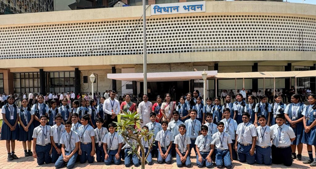 पनवेल प्रतिनिधी : रयत शिक्षण संस्थेच्या उलवे नोडमधील सौ. शकुंतला रामशेठ ठाकूर सीबीएसई स्कुल हे शिक्षण प्रदान करणारे प्रख्यात शैक्षणिक संस्थान असून, येथील विद्यार्थ्यांच्या सर्वांगीण विकासासाठी विविध विद्यार्थी केंद्रित उपक्रमांचे आयोजन करण्यात येते. याचाच एक भाग म्हणून स्कुलचे चेअरमन परेश ठाकूर यांच्या मार्गदर्शनाखाली या विद्यालयातील इयत्ता सातवी आणि आठवीच्या ५८ विद्यार्थी व ०४ शिक्षकांच्या समूहाने महाराष्ट्र विधानमंडळाच्या अर्थसंकल्पीय अधिवेशन व ग्रंथालयास भेट दिली.