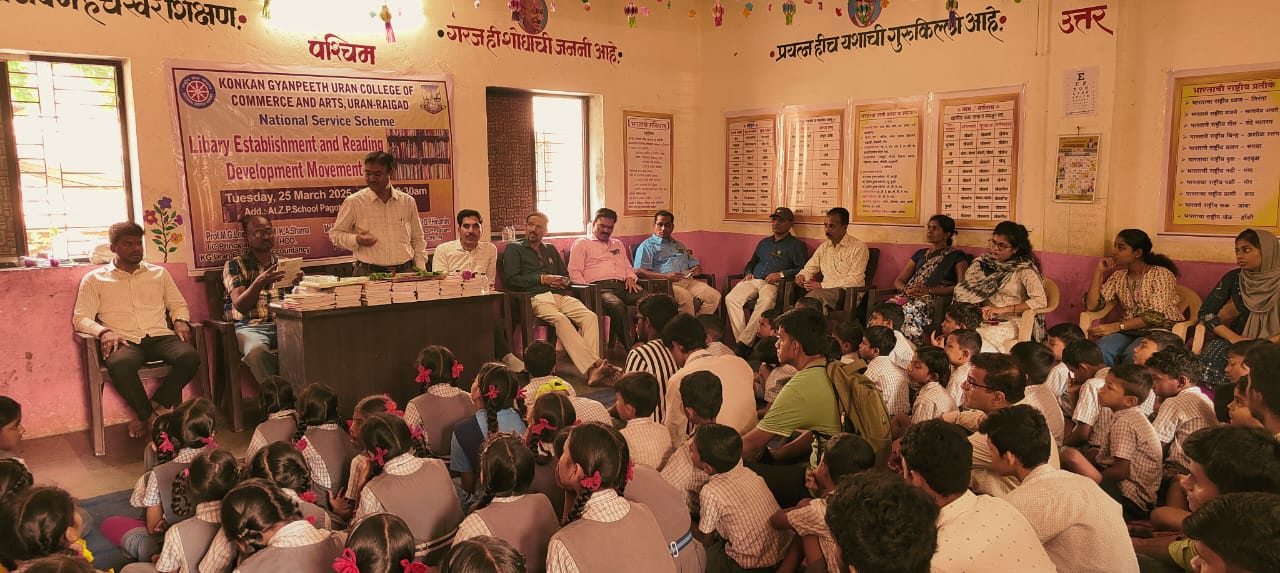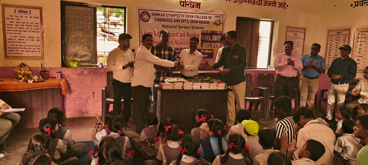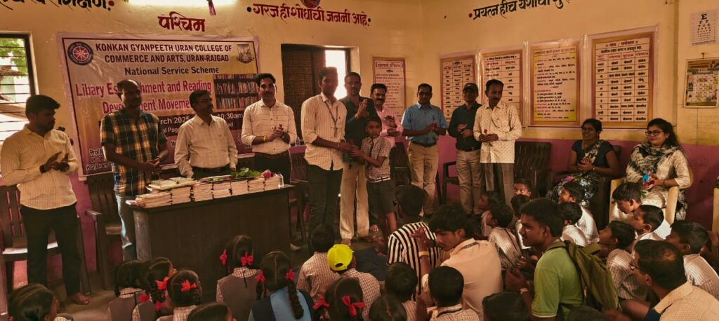 उरण दि २५ ( विठ्ठल ममताबादे ) : कोकण ज्ञानपीठ उरण वाणिज्य व कला महाविद्यालयातील राष्ट्रीय सेवा योजना विभागाच्या वतीने पागोटे तालुका उरण जिल्हा रायगड येथे ग्रंथालयाची स्थापना मागील वर्षी करण्यात आली होती. या ग्रंथालयासाठी महाविद्यालयाच्या वतीने रुपये ३४१९३ किमतीची पुस्तके भेट देण्यात आली.ग्रामीण भागात ग्रंथालय स्थापना व वाचन विकास चळवळ वृद्धिंगत करण्याच्या उद्देशाने या कार्यक्रमाचे आयोजन केले गेले. कार्यक्रमासाठी गावचे सरपंच कुणाल पाटील,रायगड जिल्हा परिषद शाळेचे मुख्याध्यापक अनंत पाटील, महाविद्यालयाचे प्रभारी प्राचार्य डॉ. एम.जी.लोणे, आय.क्यु ए.सी समन्वय डॉ.ए.आर. चव्हाण,प्रा व्ही.एस. इंदुलकर, डॉ. एच. के जगताप, प्रा.ए.के. ए.के. गायकवाड, प्रा. रामकृष्ण ठावरे, डॉ. पराग कारुळकर,तानाजी घ्यार, महाविद्यालयातील विद्यार्थी, शाळेचे सर्व शिक्षक व विद्यार्थी याप्रसंगी उपस्थित होते. या उपक्रमासाठी हितेंद्र घरत (सामाजिक कार्यकर्ते केगाव) यांनी रुपये ५००० तसेच के.ए.शामा, सर्व शिक्षक व शिक्षकेतर कर्मचारी यांनी आर्थिक मदत केली.त्यामुळे कार्यक्रम यशस्वी झाले. डॉ. एम.जी.लोणे यांनी राष्ट्रीय सेवा योजनेच्या माध्यमातून ग्रामीण भागातील लोकांचे प्रबोधन व अशा विविध उपक्रमांचे आयोजन केले जाते असे सांगितले. कॉमर्स विभाग प्रमुख प्रा.व्हि. एस. इंदुलकर यांनी वाचनाचे महत्त्व विद्यार्थ्यांच्या समोर मांडले.व वाचनाची आवड विद्यार्थ्यांनी निर्माण करावी असे सांगितले. डॉ. ए.आर.चव्हाण यांनी छत्रपती संभाजी महाराजांच्या जीवनाचे उदाहरण दिले व पराक्रम व बुद्धिमत्ता यांचे एकत्रीकरण झाले पाहिजे असे सांगितले. त्यासाठी वाचन आवश्यक असल्याचे सांगितले. महाविद्यालयाच्या प्राचार्यांच्या हस्ते पुस्तके सरपंच कुणाल पाटील व मुख्याध्यापक अनंत पाटील यांच्याकडे सुपूर्द करण्यात आली. कार्यक्रमाचे सूत्रसंचालन राष्ट्रीय सेवा योजना प्रमुख डॉ. दत्ता हिंगमिरे यांनी केले. या कार्यक्रमाच्या यशस्वीतेसाठी प्रा. विनिता तांडेल, कु.योगिनी म्हात्रे यांनी तसेच राष्ट्रीय सेवा योजनेच्या विद्यार्थ्यांनी मेहनत घेतली.