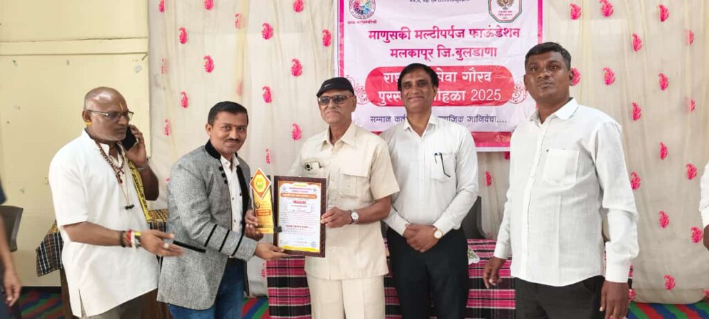 मुंबई : माणुसकी मल्टीपर्पज फाउंडेशन मलकापूर जिल्हा बुलढाणा यांच्या वतीने राज्यस्तरीय राष्ट्रभक्ती सेवा गौरव पुरस्कार सोहळा २०२५ चे आयोजन करण्यात आले होते. त्यानिमित्ताने माणुसकी मल्टीपर्पज फाउंडेशन तर्फे B.P.E.S शाळेच्या प्राथमिक विभागाचे मुख्याध्यापक श्री राजेश चंद्रकांत म्हात्रे यांना “आदर्श शिक्षक रत्न” पुरस्काराने गौरवण्यात आले.