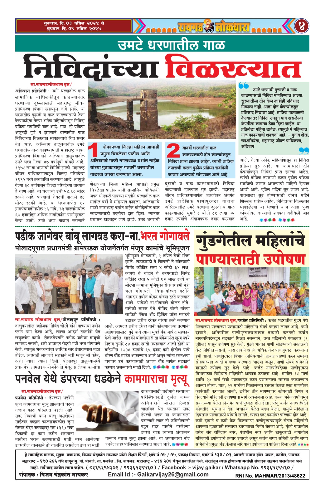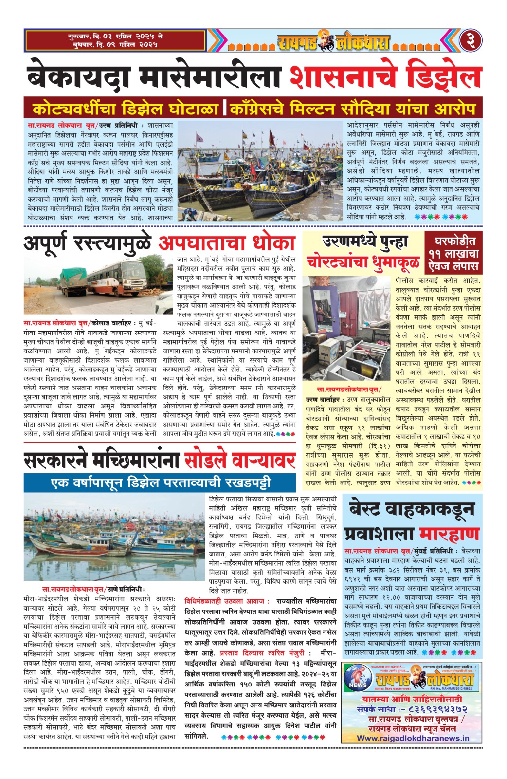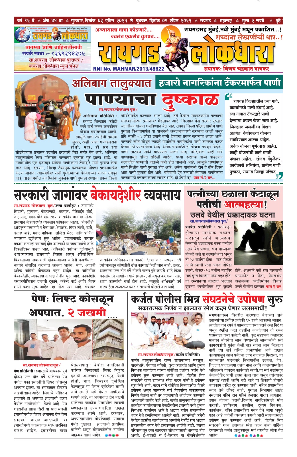 रायगड / पनवेल साप्ताहिक : रायगड लोकधारा वृत्तपत्र ( दि. ०३ एप्रिल २०२५ ते दि. ०९ एप्रिल २०२५ विजय चंद्रकांत गायकर April 3, 2025 Post navigation Previous कल्याणमध्ये सावकाराच्या त्रासाला कंटाळून रिक्षाचालकाची आत्महत्याNext साप्ताहिक रायगड लोकधारा वृत्तपत्र ( दि. ०३ एप्रिल २०२५ ते दि. ०९ एप्रिल २०२५ ) Related Stories सा.रायगड लोकधारा वृत्तपत्र / दि. 15 मे 2025 ते 21 मे 2025 रायगड / पनवेल सा.रायगड लोकधारा वृत्तपत्र / दि. 15 मे 2025 ते 21 मे 2025 May 15, 2025 साप्ताहिक रायगड लोकधारा वृत्तपत्र ( दि. ०३ एप्रिल २०२५ ते दि. ०९ एप्रिल २०२५ ) रायगड / पनवेल साप्ताहिक रायगड लोकधारा वृत्तपत्र ( दि. ०३ एप्रिल २०२५ ते दि. ०९ एप्रिल २०२५ ) April 3, 2025