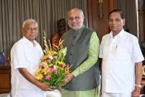 मुंबईत झालेल्या एका कार्यक्रमाच्या अनुषंगाने माजी खासदार लोकनेते रामशेठ ठाकूर यांनी महाराष्ट्राचे राज्यपाल सी. पी. राधाकृष्णन यांची आज राजभवनात सदिच्छा भेट घेतली. यावेळी त्यांनी संवाद साधत एकमेकांची विचारपूस केली. लोकनेते रामशेठ ठाकूर यांच्या समवेत भाजपचे ज्येष्ठ नेते वाय. टी. देशमुख उपस्थित होते.