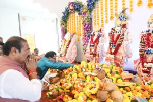 उरण प्रतिनिधी विठ्ठल ममताबादे : श्रीराम नवमीनिमित्त परिसरातील अनेक मंदिरांत जाऊन आज प्रभू श्रीरामांचे दर्शन आंतरराष्ट्रीय कामगार नेते आणि काँग्रेसचे जिल्हाध्यक्ष महेंद्रशेठ घरत यांनी घेतले.