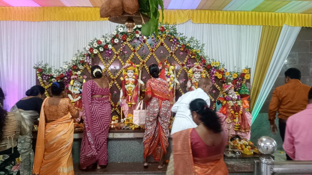 उरण प्रतिनिधी विठ्ठल ममताबादे : समस्त हिंदूचे आराध्य दैवत असलेले भगवान प्रभू श्रीरामाचे जन्मोत्सव उरण तालुक्यातील विविध भागात, गावोगावी मोठया उत्साहात साजरी करण्यात आली. दरवर्षी प्रमाणे यंदाही उरण तालुक्यातील हनुमान कोळीवाडा येथे गावाचे आराध्य दैवत प्रभू श्रीरामाचे जन्मोत्सव मोठया उत्साहात संपन्न झाले.हनुमान कोळीवाडा मधील श्रीराम मंदिरात विविध धार्मिक, सामाजिक कार्यक्रमांचे आयोजन करण्यात आले होते. भजन, आरती, महाप्रसाद, मान्यवरांचे स्वागत व सत्कार, पालखी मिरवणूक सोहळा आदी कार्यक्रम मोठया उत्साहात संपन्न झाले. यावेळी भाविक भक्तांनी प्रभू श्रीरामाचे मोठया प्रमाणात दर्शन घेतले. सर्व भाविक भक्तांनी रांगेत उभे राहून शिस्तीने दर्शन घेतले. सर्व कार्यक्रम यशस्वी करण्यासाठी शेवा कोळीवाडा सामाजिक ग्रामविकास मंडळ, ग्रामस्थ हनुमान कोळीवाडा, शेवा कोळीवाडा विस्थापित महिला संघटना, महाराष्ट्र स्मॉल स्केल ट्रेडिशनल फिश वर्कर्स युनियन, पारंपारिक मच्छिमार सामाजिक बचाव व कृती समिती, सामूहिक वन हक्क समिती शेवा कोळीवाडा, श्री हनुमान कोळीवाडा मच्छिमार विकास संस्था मर्यादित आदी संस्था संघटनेचे पदाधिकारी सदस्य यांनी विशेष मेहनत घेतली. एकंदरीत हनुमान कोळीवाडा गावात श्रीराम जन्मोत्सव सोहळा मोठया उत्साहात संपन्न झाले.