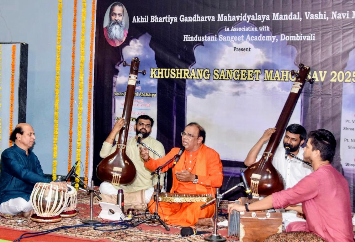 पनवेल प्रतिनिधी : प्रख्यात संगीततज्ञ उस्ताद अस्लम हुसैन खान यांच्या पुण्यस्मृतीप्रित्यर्थ अखिल भारतीय गंधर्व महाविद्यालय मंडळ नवी मुंबई व हिंदुस्तानी संगीत अकॅडमी यांच्या संयुक्त विद्यमाने आयोजित करण्यात आलेल्या खुशरंग संगीत महोत्सवात संगीत पर्वणी सादर होताना शिष्याच्या कंठातून गुरुंचे अवतरण झाले.