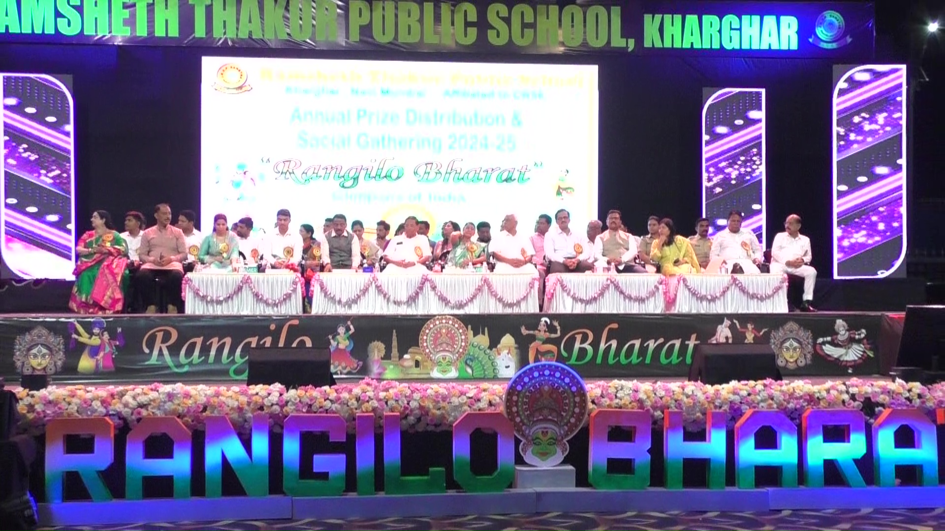 या सोहळ्यामध्ये नर्सरीपासून बारावीपर्यंतच्या विद्यार्थ्यांनी पारंपरिक नृत्य, लोकगीते, नाट्यछटा आणि संगीत यांच्या माध्यमातून भारतातील विविध राज्यांची संस्कृती रंगमंचावर साकारली. सांस्कृतिक कार्यक्रमासोबतच, शैक्षणिक, क्रीडा आणि सहशालेय उपक्रमांमध्ये उत्कृष्ट कामगिरी करणाऱ्या ३३ गुणवंत विद्यार्थ्यांचा पारितोषिक वितरण समारंभ मोठ्या सन्मानाने पार पडला. या विद्यार्थ्यांमध्ये १५ जणांनी आयआयटी, ७ जणांनी एमबीबीएस, ३ जणांनी बीडीएस आणि १ विद्यार्थ्याने नॅशनल डिफेन्स अकॅडमीमार्फत भारतीय हवाई दलात प्रवेश मिळवला आहे. याशिवाय, ७ क्रीडापटूंनी सीबीएससी राष्ट्रीय स्पर्धा, राज्यस्तरीय अॅथलेटिक्स आणि फेन्सिंग चॅम्पियनशिपमध्ये यश मिळवले आहे. या सर्व गुणवंत विद्यार्थ्यांना प्रत्येकी १० हजार रोख रक्कम आणि स्मृतिचिन्ह देऊन गौरविण्यात आले. यावेळी जनार्दनभगत शिक्षण प्रसारक संस्थेचे व्हाईस चेअरमन वाय.टी. देशमुख, शकुंतला ठाकूर, पनवेल महापालिकेचे माजी सभागृहनेते व संस्थेचे सदस्य परेश ठाकूर, सचिव डॉ. एस. टी. गडदे, वरिष्ठ पोलीस निरीक्षक दीपक सुरवे, भाजपचे खारघर शहर अध्यक्ष प्रवीण पाटील, संस्थेच्या संचालिका अर्चना ठाकूर, माजी नगरसेवक हरेश केणी, नरेश ठाकूर, अभिमन्यू पाटील, गुरुनाथ गायकर, निलेश बाविस्कर, आरती नवघरे, नेत्रा पाटील, मुख्याध्यापिका राज अलोनी, कीर्ती नवघरे, किरण पाटील, दीपक शिंदे, स्वप्नील ठाकूर, अमोघ ठाकूर, अमर उपाध्याय, नितेश पाटील, प्रवीण बेरा, यांच्यासह पदाधिकारी, पालक, विद्यार्थी, शिक्षक उपस्थित होते.
