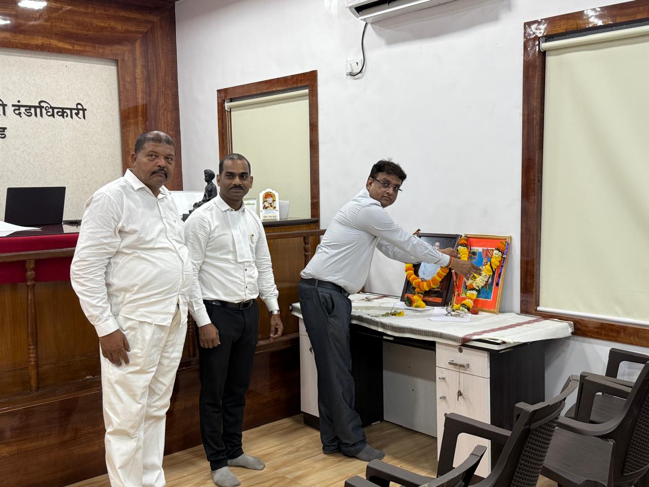 उरण दि. १ ( विठ्ठल ममताबादे ) : ३० एप्रिल २०२५ रोजी उरण तालुक्यातील पंचायत समिती, तहसील कार्यालय, नगर परिषद आदी शासकीय कार्यालयात महात्मा बसवेश्वर व राष्ट्रसंत तुकडोजी महाराज जयंती मोठया उत्साहात साजरी करण्यात आली. उरण नगर परिषद मध्ये मुख्याधिकारी तथा प्रशासक समीर जाधव यांच्या हस्ते महात्मा बसवेश्वर व राष्ट्रसंत तुकडोजी महाराज यांच्या प्रतिमेस पुष्पहार अर्पण करून अभिवादन करण्यात आले. पंचायत समिती कार्यालयात सहाय्यक प्रशासन अधिकारी मिलिंद धाटावकर, कनिष्ठ प्रशासन अधिकारी जितेंद्र चिर्लेकर यांच्या हस्ते प्रतिमेस पुष्पहार अर्पण करून अभिवादन करण्यात आले. उरण तहसील कार्यालयात तहसीलदार उद्धव कदम यांच्या हस्ते महात्मा बसवेश्वर व राष्ट्रसंत तुकडोजी महाराज यांच्या प्रतिमेस पुष्पहार अर्पण करून महात्मा बसवेश्वर व राष्ट्रसंत तुकडोजी महाराज जयंती साजरी करण्यात आली. उरण मधील या महत्वाच्या शासकीय कार्यालयात महात्मा बसवेश्वर व राष्ट्रसंत तुकडोजी महाराज यांच्या कार्याचे, विचारांची माहिती उपस्थितांना देण्यात आली. शिवा अखिल भारतीय वीरशैव युवक संघटनेच्या पत्रव्यवहार व पाठपुराव्यामुळे उरण तालुक्यात सर्वत्र महात्मा बसवेश्वर यांची जयंती साजरी करण्यात येऊ लागली. महात्मा बसवेश्वर जयंती व राष्ट्रसंत तुकडोजी महाराज जयंती निमित्त शिवा अखिल भारतीय वीरशैव युवक संघटनेचे पदाधिकारी कार्यकर्त्यांनी सर्व शासकीय कार्यालयाचे अधिकारी कर्मचारी वर्गांचे आभार मानत सर्वांना जयंतीच्या शुभेच्छा दिल्या आहेत.