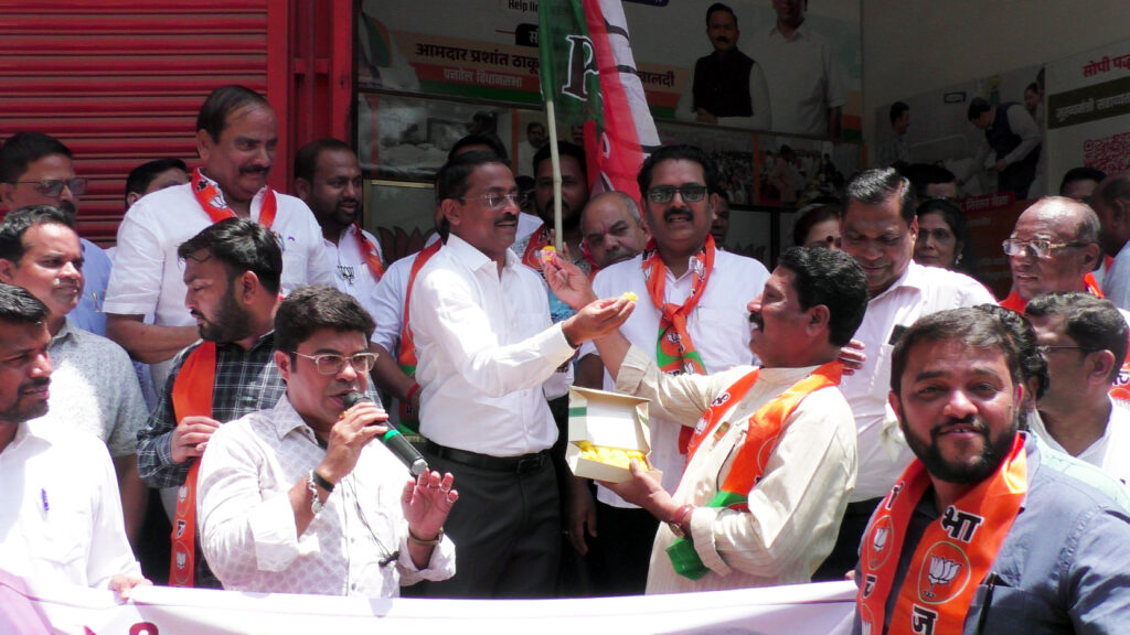 पनवेल प्रतिनिधी : भारत सरकारने देशाचे पंतप्रधान नरेंद्र मोदी यांच्या नेतृत्वाखाली जात निहाय जनगणना करण्याचा ऐतिहासिक निर्णय घेतला आहे. या निर्णयाची अधिकृत घोषणा केंद्रीय मंत्री अश्विनी वैष्णव यांनी केली असून या महत्वपूर्ण निर्णयाचा पनवेल भारतीय जनता पार्टीच्यावतीने जोरदार स्वागत करत पंतप्रधान नरेंद्र मोदी आणि सरकारचे अभिनंदन व आभार मानण्यात आले. लोकप्रिय आमदार प्रशांत ठाकूर यांच्या प्रमुख उपस्थितीत पनवेल तालुका व शहर भाजप कार्यालय येथे झालेल्या या जल्लोष कार्यक्रमात पेढे भरवून आणि फटाके फोडून आनंद साजरा करण्यात आला.