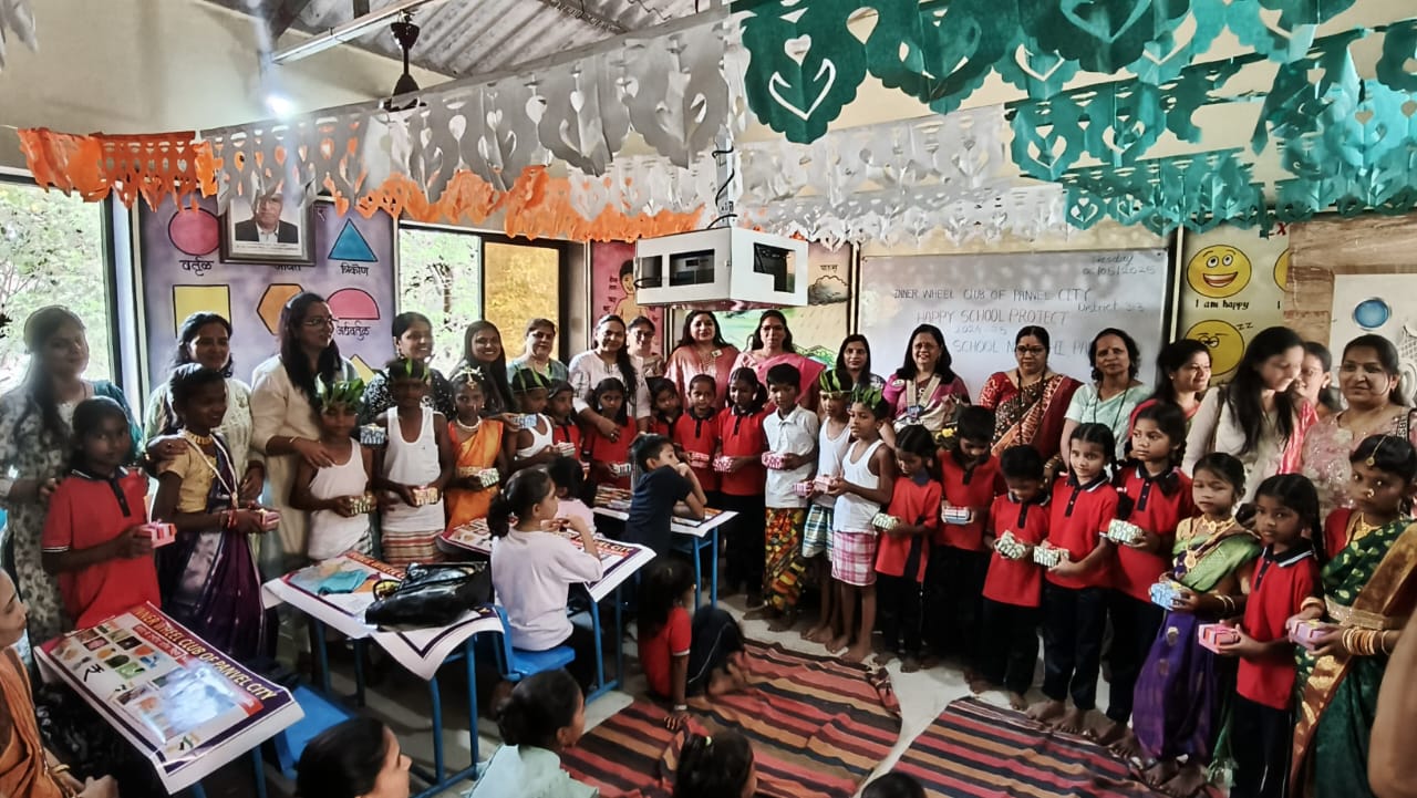 याकामी अर्चना परेश ठाकूर यांनी तसेच त्यांच्या वीर वुमेन्स फाउंडेशन या संस्थेने तसेच अरिहंत पेन्टस् पनवेल यांनी देखील आर्थिक सहाय्य करून मोलाची मदत केली. इनरव्हील क्लबच्या जिल्हाध्यक्षा डॉ. शोभना पालेकर यांच्या हस्ते कायापालट केलेल्या नवीन वर्गाचे उद्धाटन करण्यात आले.यावेळी अध्यक्षा प्रतिभा डांगी, माजी अध्यक्षा ध्वनी तन्ना, सेक्रेटरी वैशाली करारिया,खजिनदार हेतल बालड, एडिटर ममता ठक्कर, विजयता कोठारी, मिनी राजपुत, अरुंधती बंडसोडे, शिल्पी भोनसुले, तनिशा चेतवानी, प्रिया चातुर्वेदी तसेच वीर वुमेन्स फाऊंडेशनच्या किर्ती मुनोत व श्रुती निसर, शिक्षिका सोनल गावंड, शिक्षक गणेश खैरे, सरपंच संगीता राजेंद्र पाटील, केंद्रप्रमुख अंकिता हुदार, स्थानिक स्कुल कमिटी चेअरमन सीमा पारधी, विमल ठाकरे, तुळसा, गिरा, पालक व ग्रामस्थ उपस्थित होते . उपस्थितांकडून मनापासून संस्थेच्या कार्याचे कौतुक करण्यात आले . यावेळी शाळेतील विद्यार्थ्यांनी नृत्ये करून आपल्या संस्कृतीचे प्रदर्शन करून उपस्थितांची मने जिंकली . कार्यक्रमानंतर मुलांना खाऊचे वाटप करण्यात आले .