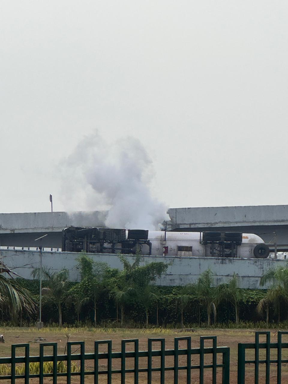 उरण दि. १९ ( विठ्ठल ममताबादे ) : उरण तालुक्यातील करळ/ सोनारी ब्रिजवर गॅस टँकर अवघड वळणावर दिनांक १९ मे रोजी दुपारी तीन ते चार वाजण्याच्या दरम्यान पलटी झाला असुन कोणत्याही प्रकारची जिवंत हानी झाली नसली तरी, लाखो रुपयाची गॅस गळती झाली असुन गॅसचे धूर गावांमध्ये २ ते ३ किलोमीटरवर पसरले आहेत. रस्ता वाहतुकीसाठी बंद करण्यात आला आहे.घटना स्थळी उरण पोलीस स्टेशन, न्हावा शेवा पोलीस स्टेशन आणि वाहतूक पोलीस अधिकारी पोचले असुन पुढील तपास करीत आहेत.बिपीसीएल रेस्क्यू टीम,सिडको अग्निशमन, जेएनपीटी अग्निशमन, ट्रॅफिक विभागाचे डीसीपी तिरुपती काकडे, ट्रॅफिक विभागाचे एसीपी विठ्ठल कुबडे, वाहतूक विभागाचे पोलीस निरीक्षक अतुल दहिफळे, न्हावाशेवा ट्रॅफिक पोलीस निरीक्षक मुजावर,गव्हाण फाटा ट्रॅफिक पोलीस निरीक्षक बदगुजर आदी वाहतूक विभागाच्या अधिकाऱ्यांनी अपघात ठिकाणी पाहणी केली.वाहन चालकाचा वाहनावरील नियंत्रण सुटल्याने सदर अपघात झाल्याचा प्राथमिक अंदाज वर्तविण्यात येत आहे.