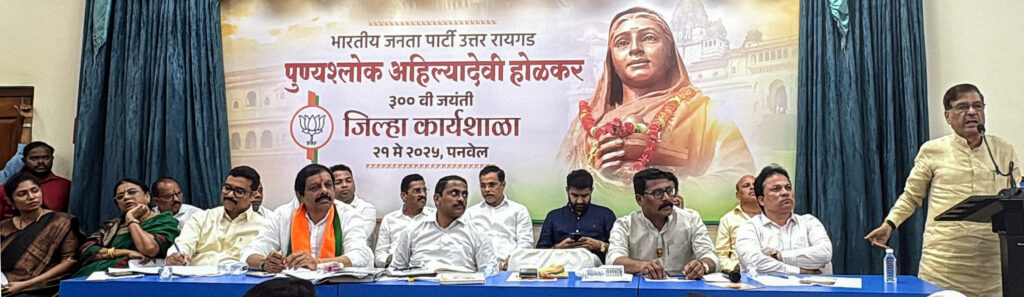 भारतीय जनता पक्षाकडून पुण्यश्लोक अहिल्यादेवी होळकर यांच्या ३०० व्या जयंतीनिमित्त २१ मे ते ३१ मे या कालावधीत “सामाजिक पर्व” म्हणून विविध उपक्रमांचे आयोजन करण्यात आले आहे. या उपक्रमांच्या माध्यमातून अहिल्यादेवींच्या समाज सुधारणेतील योगदान, प्रशासनातील पारदर्शकता, महिला सक्षमीकरणासाठीचा दृष्टिकोन आणि सांस्कृतिक वारसा यांचा नव्या पिढीला परिचय करून देण्याचा भाजपचा प्रयत्न असून त्या अनुषंगाने उत्तर रायगड जिल्हा भाजपच्यावतीने जिल्हा व तालुका मंडल स्तरावर विविध कर्यक्रमांचे आयोजन करून “सामाजिक पर्व” मोठ्या उत्साहात साजरा केला जाणार आहे. या ‘सामाजिक पर्व’च्या नियोजनासंदर्भात उत्तर रायगड जिल्हा भाजपची कार्यशाळा आमदार प्रशांत ठाकूर यांच्या प्रमुख उपस्थितीत मार्केट यार्ड मधील श्री. रामशेठ ठाकूर सामाजिक विकास मंडळाच्या सभागृहात पार पडली. त्यावेळी प्रमुख वक्ता म्हणून मार्गदर्शन करताना बोलत होते.