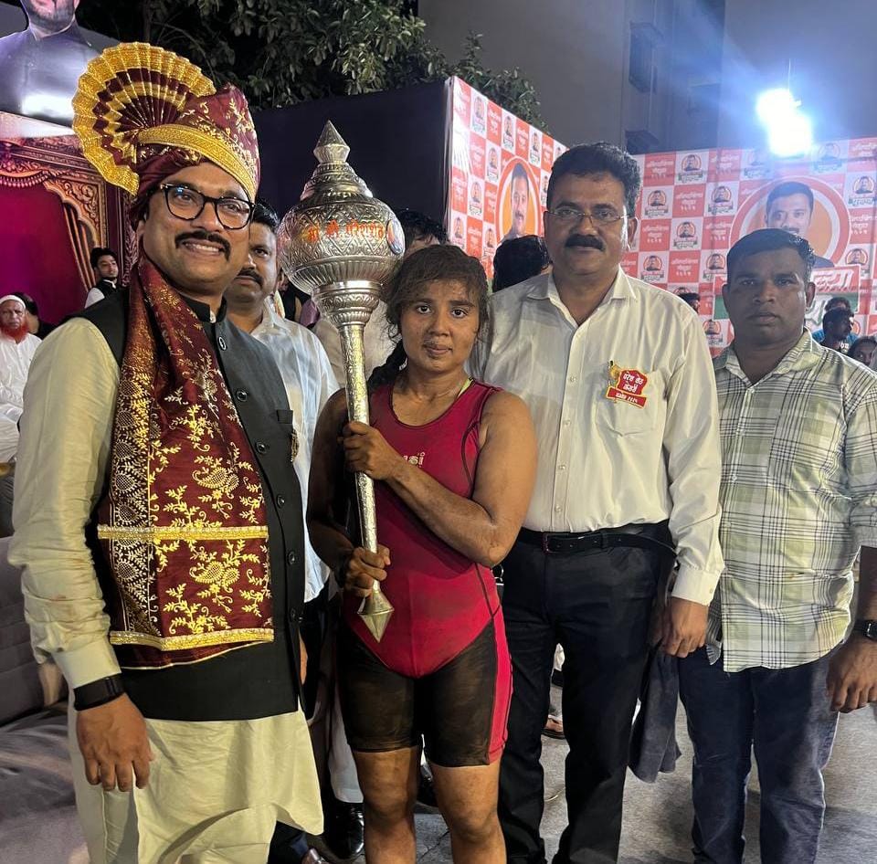 उरण दि. २० ( विठ्ठल ममताबादे ) : उरण तालुक्यातील खोपटें गावची कुस्तीपटू अमेघा घरत हिने सलग तिसऱ्यांदा अजिंक्यपद कुस्ती स्पर्धेत मानाची गदा पटकावली आहे. सदर कुस्ती स्पर्धा परेश शेठ ठाकूर यांच्या वाढदिवसानिमित्त १८ मे २०२५ रोजी कामोठे येथे घेण्यात आली होती. या कुस्ती स्पर्धेत अमेघाने उत्कृष्ट प्रकारची आपली तालीम दखविली आहे. याप्रसंगी तिच्यावर संपूर्ण रायगड मधील कुस्तीपटूंचाच नव्हे तर सामान्य जनतेचा ही शुभेच्छांचा वर्षाव सुरू होत आहे. कारण एक मुलगी असून या कुस्ती क्षेत्रात आपले नावलौकिक केले आहे. उरणची अमेघा हिचे सर्वत्रच कौतुक होत आहे. आजकालच्या जगात मुली कोणत्याच क्षेत्रात मागे नाहीत. मुली फक्त चूल आणि मूल हे करत न बसता प्रत्येक क्षेत्रात दैदिद्यमान यश मिळवत आहेत. त्याचेच एक उत्तम उदाहरण जगासमोर ठेवत उरण तालुक्यातील अमेघा घरतने हा मान मिळविला आहे. अमेघाला लहानपणापासूनच क्रीडा क्षेत्राची आवड होती . तिच्या परिवारानेही तिला तिच्या आवडता क्षेत्र निवडण्यासाठी प्रोत्साहन दिले आणि यातूनच आता अमेघा ही उरणचे नाव लौकिक करत संपूर्ण महाराष्ट्रात नाव गाजवत आहे. अमेघावर सर्वच क्षेत्रातून शुभेच्छांचा वर्षाव होत आहे. आणि तिच्या भविष्यासाठी पुढील वाटचालीसाठी ही तिच्यावर आशीर्वादांचा वर्षावही होत आहे. या सर्वांमुळे तिच्या आई-वडिलांनाही आपल्या मुलीचे खूप कौतुक वाटत आहे.