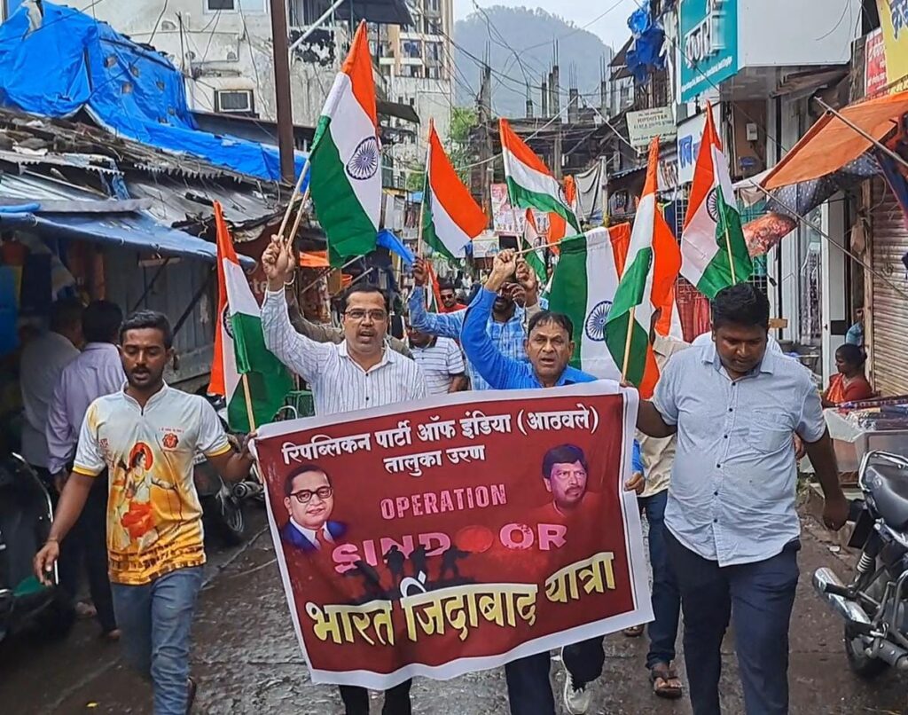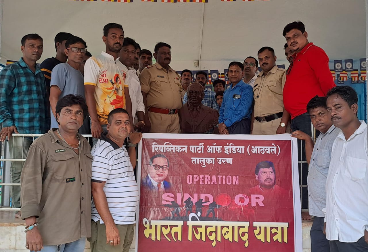उरण दि. २५ विठ्ठल ममताबादे : पहलगाम दहशतवादी हल्ल्या नंतर भारताने ऑपरेशन सिंदूर द्वारे पाकिस्तान मधील दहशत वाद्यांना चोख प्रत्युत्तर दिले. या ऑपरेशन सिंदूर मध्ये भारतीय सैनिकांनी महत्वाची भूमिका बजावली होती. या गोष्टीचे स्मरण करत भारतीय सैनिकांचे मनोधैर्य वाढविण्यासाठी आरपीआय पक्षाचे राष्ट्रीय अध्यक्ष तथा केंद्रिय सामाजिक न्याय राज्यमंत्री आद.ना.रामदासजी आठवले साहेब यांनी संपुर्ण भारतभर “भारत जिंदाबाद यात्रा” काढण्याचे आदेश जाहिर केले होते. त्या अनुषंगाने दिनांक – २५ मे २०२५ रोजी सकाळी १२ वाजता उरण तालुका अध्यक्ष संजय गायकवाड यांच्या नेतृत्वाखाली उरणमध्ये “भारत जिंदाबाद यात्रा” काढण्यात आले. सदर “भारत जिंदाबाद यात्रा” हि उरण आरपीआय कार्यालय येथून निघून डॉ. बाबासाहेब आंबेडकर बालोद्यान उरण बौद्धवाडा येथे परमपूज्य डॉ. बाबासाहेब आंबेडकरांचे पुतळ्यास अभिवादन करून यात्रा संपन्न झाली.