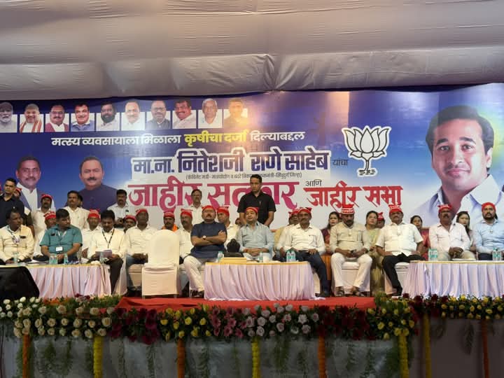 मस्यव्यवसायाला कृषी समकक्ष दर्जा मिळाल्याबद्दल कॅबिनेट मंत्री नितेश राणे यांचा शुक्रवारी (दि. २३) करंजा येथे जाहीर सत्कार करण्यात आला. त्या वेळी सत्काराला उत्तर देताना ते बोलत होते.