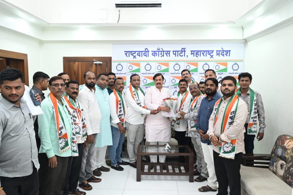 उरण दि. २९ विठ्ठल ममताबादे : उरणच्या राष्ट्रवादी काँग्रेसमध्ये शरद पवार गटात प्रशांत पाटील यांच्या नेतृत्वाखाली काम करणाऱ्या अनेक पदाधिकाऱ्यांनी आज राष्ट्रवादी काँग्रेसचे प्रदेशाध्यक्ष तथा मंत्री सुनील तटकरे यांची भेट घेत अजितदादा पवार गटात प्रवेश केला आहे. यामध्ये प्रशांत पाटील यांच्या नेतृत्वाखाली तालुकाध्यक्ष पदाची धुरा सांभाळलेले मनोजदादा भगत, माजी कार्याध्यक्ष रमण कासकर, प्रवक्ते अजित पाटील , भेंडखळ ग्रामपंचायतीचे विद्यमान सदस्य लिलेश्वर भगत ,तत्कालीन तालुका सरचिटणीस भूषण ठाकूर , उरण विधानसभा सरचिटणीस निलेश पाटील, तत्कालीन उरण तालुका ओबीसी सेल तालुकाध्यक्ष मच्छिंद्र ठाकूर , तालुका सरचिटणीस नामदेव मढवी ,जासई विभाग अध्यक्ष दिपक पाटील, संतोष ठाकूर , गायकवाड आदी कार्यकर्त्यांनी यावेळी प्रदेश कार्यालयात राष्ट्रवादी काँग्रेस पक्षात प्रदेशाध्यक्ष खा. सुनील तटकरे यांच्या हस्ते घड्याळाचे चिन्ह असलेले उपरणे परिधान करीत जाहीर पक्ष प्रवेश केला. यावेळी पक्षाचे विद्यमान तालुका अध्यक्ष परीक्षित प्रकाश ठाकूर , प्रदेश सरचिटणीस गर्जे , आनंद परांजपे , उरण विधानसभा मतदार संघाचे अध्यक्ष तथा माजी जिल्हा परिषद सदस्य वैजनाथ ठाकूर आदी पदाधिकारी कार्यकर्ते उपस्थित होते.
