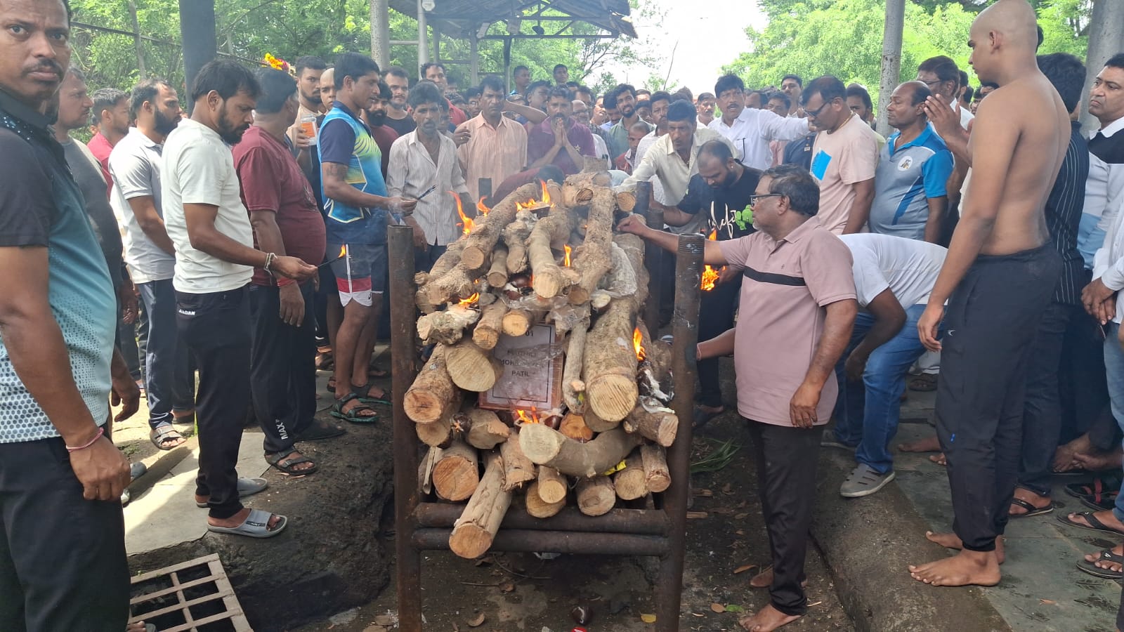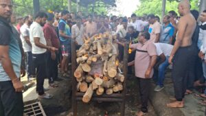 पनवेल प्रतिनिधी : अहमदाबाद येथे नुकत्याच झालेल्या भीषण विमान दुर्घटनेत दुर्दैवी मृत्यूमुखी पडलेल्या पनवेल तालुक्यातील न्हावे गावची सुकन्या, हवाई सुंदरी मैथिली पाटील हिच्या पार्थिवावर आज (मंगळवारी) अत्यंत शोकाकुल वातावरणात अंत्यसंस्कार करण्यात आले. या घटनेमुळे संपूर्ण न्हावा गावावर आणि परिसरात शोककळा पसरली आहे. अंत्यसंस्कारावेळी आमदार प्रशांत ठाकूर, आमदार महेश बालदी यांच्यासह पंचक्रोशीतील हजारों ग्रामस्थांनी मैथिली पाटील हिला श्रद्धांजली वाहिली. कृष्णभक्त मैथिलीला ‘राधे राधे’ आवाजांनी निरोप देण्यात आला. निरोप देताना सर्वांच्या डोळ्यातून अश्रूंच्या धारा येत होत्या.