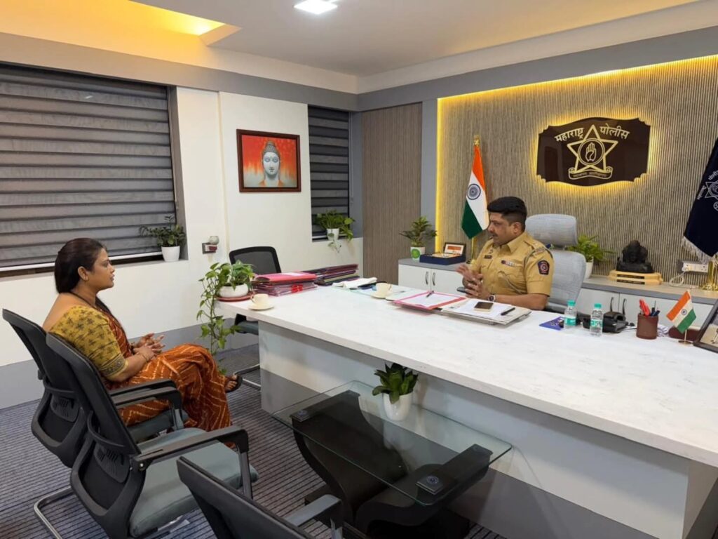 महिला सुरक्षिततेच्या संदर्भात महिला सामाजिक कार्यकर्त्या तथा राष्ट्रवादी काँग्रेस पार्टी (श्री शरदचंद्र पवार पक्ष )चे महाराष्ट्र राज्य उपाध्यक्ष भावना घाणेकर यांनी उरण मधील विविध समस्या संदर्भात पोलीस प्रशासनाचे नवी मुंबई परिमंडळ २ चे उपायुक्त अमित काळे यांची भेट घेतली.चर्चेदरम्यान उरण मधील अति संवेदनशील बाबींवर त्यांचे लक्ष वेधले तसेच उरण मध्ये आजही अनेक सार्वजनिक ठिकाणी सीसीटीव्ही कॅमेरे नाहीत, रस्त्यांवर दिवे नाहीत, उरण मध्ये झालेली यशश्नी शिंदे यांची हत्या त्याठिकाणी देखील आजसुद्धा सीसीटीव्ही कॅमेरे आणि दिवे नाहीत तसेच उरण रेल्वे स्थानकापासून पुढे शहराकडे येणारा रस्ता देखील नेहमी अंधारमय झालेला असतो.अनेक महिला भगिनी येत जात असतात त्यांना आज देखील तेथे असुरक्षित वाटत असते. तसेच उरण मधील अनेक ठिकाणी जसे की लाल मैदान, समुद्र किनारपट्टी चा भाग आणि इतरत्र बसण्यासाठी असलेल्या जागा तिथे रात्रीच्या वेळेस दारू पिण्यासाठी लोक बसलेले असतात त्याठिकाणी देखील सीसीटीव्ही कॅमेरे आणि लाईट्स लावण्याचे आवश्यक असल्याचेही सुचवले. नवी मुंबई आणि उरण परिसरातील ड्रग्सच्या संदर्भात येणाऱ्या तक्रारी या सर्व गोष्टीवर भावना घाणेकर यांनी सविस्तर चर्चा केली.यावेळी नवी मुंबई परिमंडळ २ चे पोलीस उपायुक्त अमित काळे यांनी महिला सुरक्षा, रस्त्यावरील दिवे, सीसीटीव्ही संदर्भातील प्रश्न , ड्रग संदर्भातील आणि इतर संवेदनशील सर्व गोष्टीवर योग्य कार्यवाही करण्यात येईल असे आश्वासित केले.