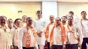 रायगड लोकधारा प्रतिनिधी : खालापूर तालुक्यातील नावंडे गावातील कार्यकर्त्यांचा गुरुवार, दि. ६ नोव्हेंबर रोजी शिवसेना पक्षात मोठ्या उत्साहात प्रवेश समारंभ पार पडला. हा पक्षप्रवेश सोहळा कर्जत येथील बाळासाहेब भवन या पक्ष कार्यालयात पार पडला. राष्ट्रवादी काँग्रेसमधून अनेक कार्यकर्त्यांनी आपल्या समर्थकांसह शिवसेनेत प्रवेश करीत पक्षाची ताकद अधिक मजबूत करण्याचा निर्धार केला आहे. या कार्यक्रमात गावातील नागरिक आणि पक्षाचे नेते मोठ्या प्रमाणात उपस्थित होते.