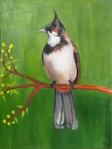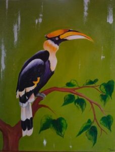 चित्रकार वरद गावंड यांनी साकारलेले “पक्षांचे जग” कला रसिक आणि पक्षी प्रेमींचे लक्ष वेधून घेणारे आहे. निसर्गातील रंगछटा, प्रकाश-छाया आणि पक्षांची मोहक मुद्रा, यांचे वास्तववादी चित्रण अप्रतिमपणे साकारले आहे. कलारसिकांना या पक्षांच्या रंगाच्या छटांचा मोह पडल्याशिवाय राहणार नाही.