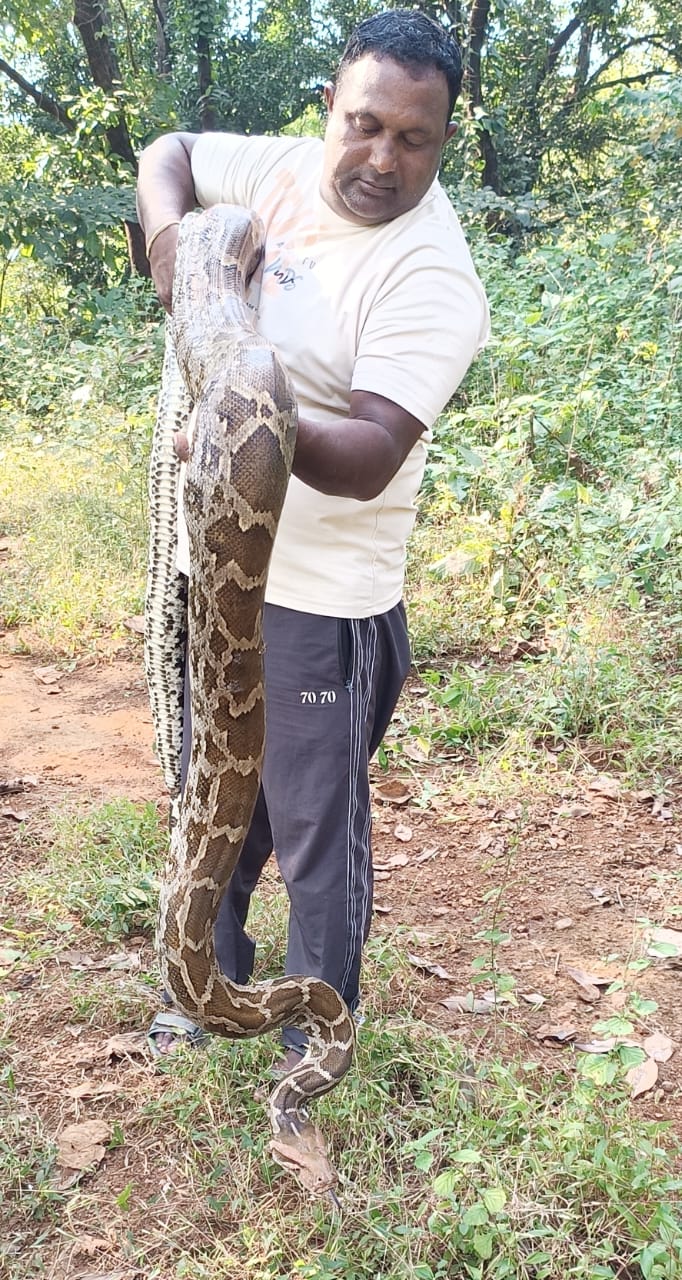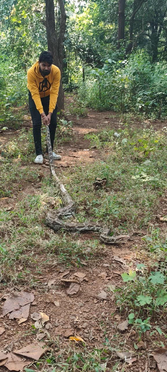 उरण प्रतिनिधी / विठ्ठल ममताबादे : नितीन गोंधळी चिरनेर यांच्या भातशेतीचे काम चालू असताना शेतात लपून बसलेला भलामोठा अजगर साप indian rock python अंदाजे १२ फूट लांब असलेला साप शेतात काम करीत असणाऱ्या कामगारांना दीसला त्याने लगेच शेत मालकाला सांगीतले व शेत मालकाने लगेच friends of nature (FON )टीम च्या हेल्पलाईन नंबरवर संपर्क केला असता सर्प मित्र अनिकेत ठाकुर यांनी तो अजगर साप सुरक्षीत पकडून सर्प मित्र राजेश पाटील यांच्या मदतीने चिरनेर जंगल परिसरात मुक्त केले.फेंड्स ऑफ नेचर (फॉन )या निसर्गप्रेमी, प्राणीप्रेमी संघटनेतर्फे विविध पशु पक्षी, वन्य जीवांचे नेहमी संरक्षण, संवर्धन केले जाते. एका शेतात सापडलेल्या सापाला यावेळी मुक्त करण्यात आले. या कार्याचे सर्वत्र कौतुक होत आहे.