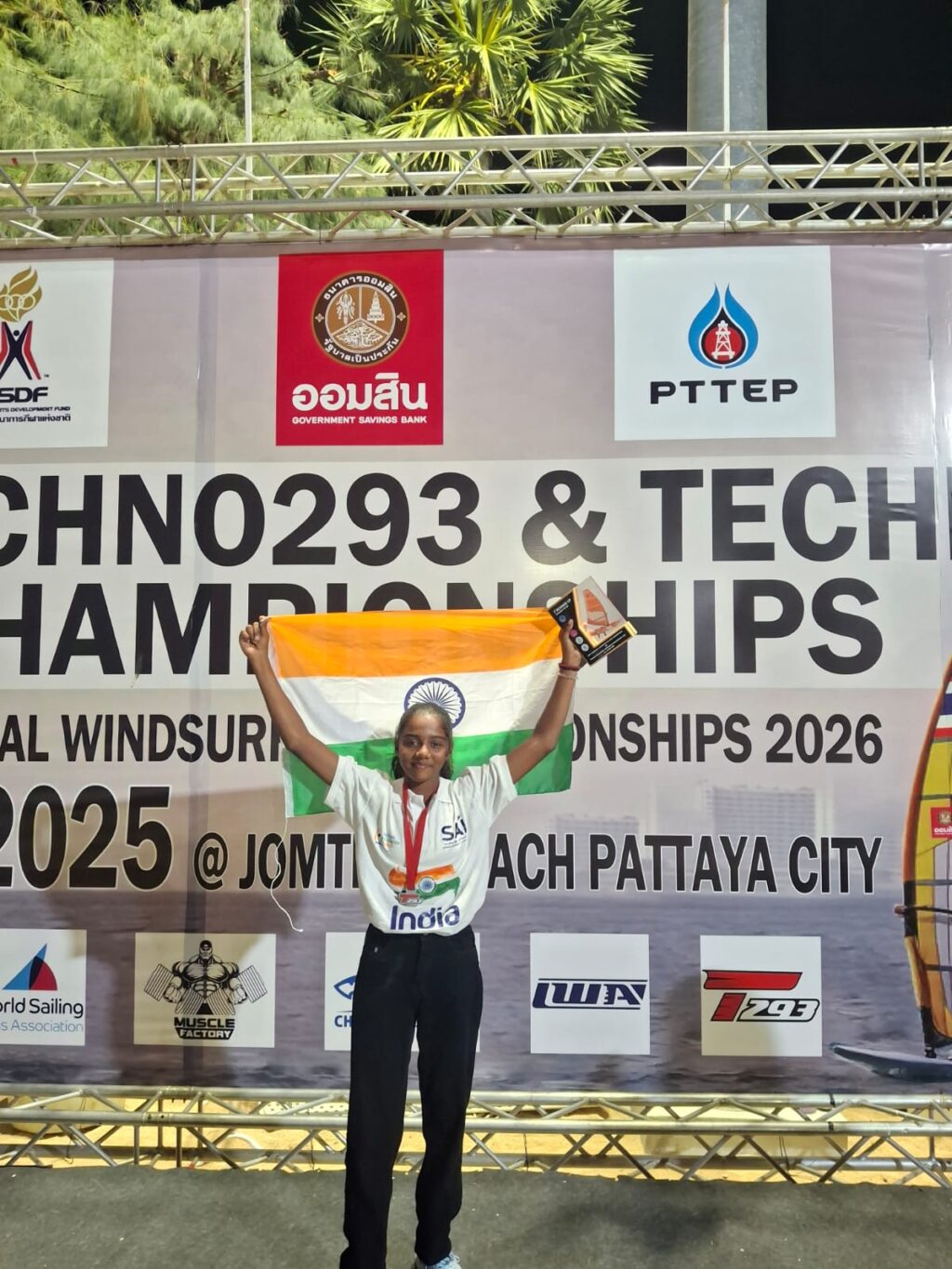 मुंबई प्रतिनिधी / सतीश पाटील : उरण परिसरातील रोटरी इंग्लिश मीडियम हायस्कूल व ज्युनियर कॉलेज उरण बोरी येथे इयत्ता आठवी या वर्गात शिकणारी 13 वर्षीय विद्यार्थिनी कुमारी प्रियांशी मयूर पाटील केगाव दांडा (उरण) ही एक उत्तम जलतरूण पट्टू असून Maharashtra yachting Association कडून खेळणारी विंडसर्फर देखील आहे.तिने पुन्हा एकदा भारताचे प्रतिनिधित्व करत 25 ते 30 नोव्हेंबर 2025 रोजी थायलंड मध्ये झालेल्या एशियन चॅम्पियनशिप विंडसर्फिंग स्पर्धेत Techno293 (U15 girls)या विभागात रौप्य पदक पटकावले आहे.आशियातील विविध देशांतील खेळाडूंमध्ये चुरशीची स्पर्धा चालू असताना प्रियांशी ला दुखापत होऊन सुद्धा आपल्या प्रियांशीने दमदार प्रदर्शन करत सर्वांचे लक्ष वेधून घेतले. जिद्द व कौशल्य दाखवत स्पर्धा पुर्ण केली.