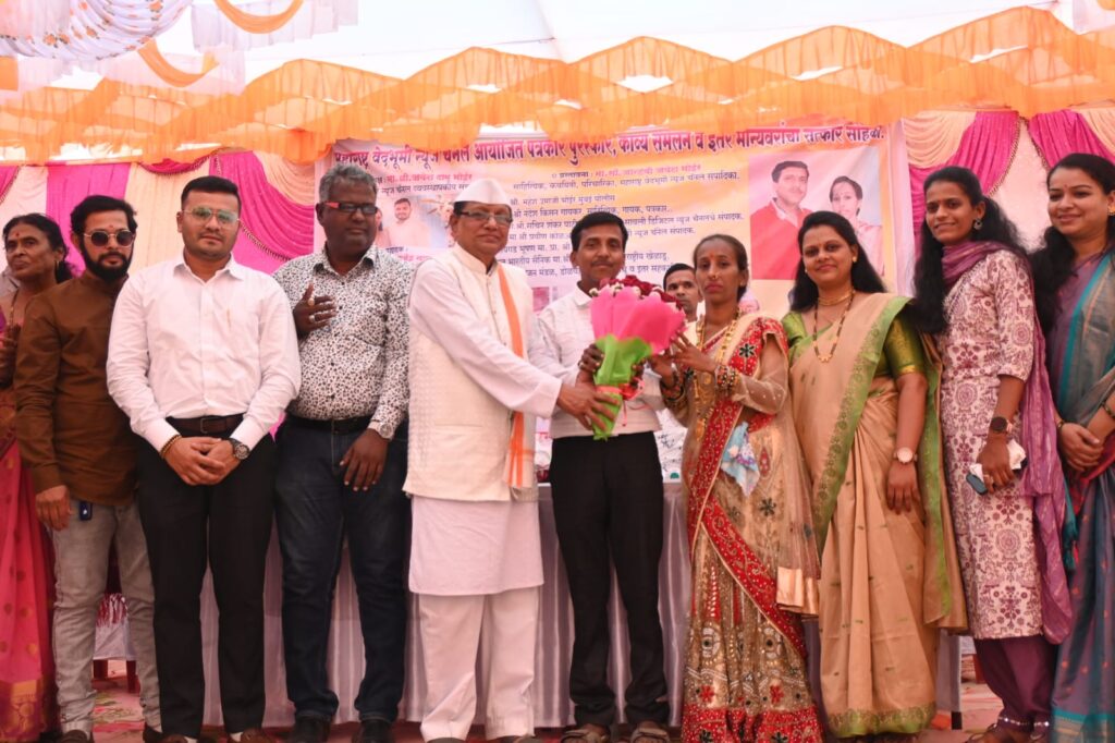 शुक्रवार दिनांक 23 जानेवारी रोजी महाराष्ट्र वेदभूमी न्यूज चॅनेल तर्फे चॅनलच्या संपादिका सौ जान्हवी भोईर , तसेच चॅनलचे व्यवस्थापकीय संचालक श्री जयेश दामू भोईर यांच्या अध्यक्षतेखाली या कार्यक्रमाचे आयोजन करण्यात आले होते… गेली दोन वर्षे महाराष्ट्र वेदभुमी न्युज चॅनेलचे यश पाहता चॅनलचे पत्रकार यांनी केलेली मेहनत, दिलेली साथ लक्षात घेऊन त्यांच्या कर्तृत्वाचा सन्मान व्हावा, आणि त्यांना पुढील वाटचालीसाठी नवी उभारी मिळावी या अनुषंगाने या कार्यक्रमाचे आयोजन करण्यात आले होते…