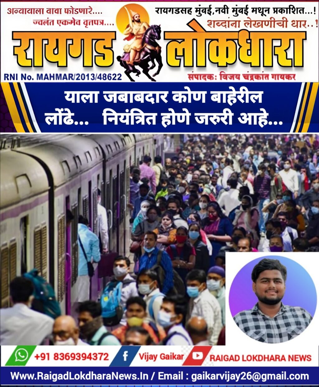 गर्दी कमी करण्यासाठी रेल्वे डब्यांची संख्या १२ करा १५ करा किंवा १८ करा काहीही उपयोग होणार नाही? कारण जोपर्यंत राज्याच्या बाहेरून येणारे परप्रांतीय लोंढे थांबणार नाहीत तोपर्यंत स्थानिक नागरिकांना असेच रोज मरावे लागणार आहे? राज्याच्या बाहेरून येणारे परप्रांतीय लोंढे थांबवण्यासाठी सरकारने स्थलांतरित कायदा पारित केला पाहिजे. हा एकमेव पर्याय आहे ?