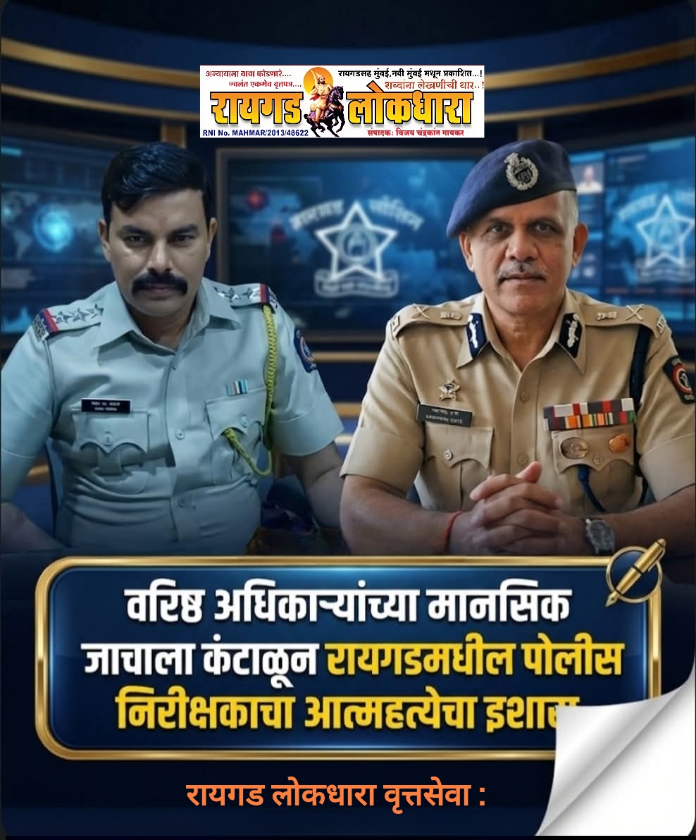 रायगड लोकधारा प्रतिनिधी / रायगड : रायगड जिल्ह्यातील महाड तालुक्यामध्ये नुकतीच एक अत्यंत खळबळजनक आणि धक्कादायक घटना समोर आली आहे. येथील एका पोलीस निरीक्षकाने आपल्या वरिष्ठ अधिकाऱ्यांच्या जाचाला कंटाळून चक्क आपले जीवन संपवण्याचा म्हणजेच आत्महत्या करण्याचा अत्यंत टोकाचा निर्णय घेतल्याचे उघडकीस आले आहे. या संदर्भात या पोलीस अधिकाऱ्याने थेट राज्याच्या पोलीस महासंचालकांना एक सविस्तर पत्र लिहून आपली व्यथा मांडली आहे. या पत्रामध्ये त्यांनी आपल्याच विभागातील काही वरिष्ठ अधिकाऱ्यांवर अत्यंत गंभीर आरोप केले आहेत. आपल्याला वरिष्ठांकडून जाणीवपूर्वक मानसिक त्रास दिला जात असून, जातीवाचक शब्दांचा वापर करून आपला वारंवार अपमान करण्यात आल्याचा धक्कादायक दावाही त्यांनी या पत्राच्या माध्यमातून केला आहे.