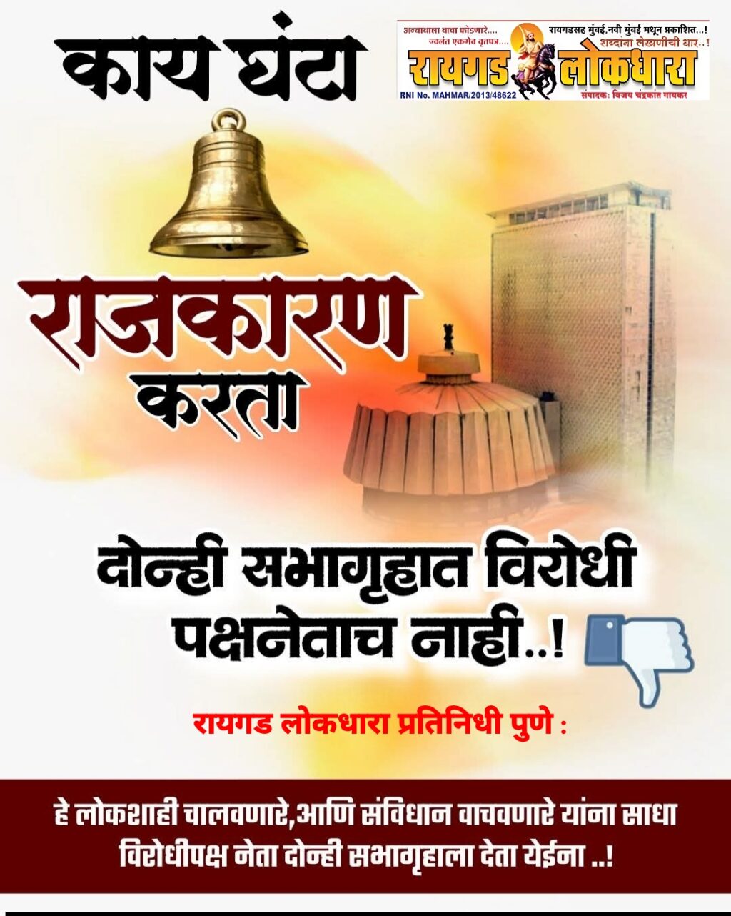 सरकार निर्णय घेतं, धोरणं आखतं, कायदे करते. पण त्यावर सखोल चर्चा, टीका, दुरुस्ती आणि जनतेचा आवाज कोण मांडणार ? विरोधी पक्षनेता हा केवळ एक पद नसून तो जनतेच्या शंका-कुशंकांचा प्रतिनिधी असतो..!