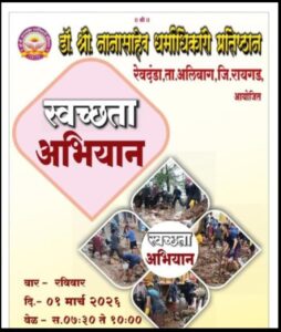 डॉ. श्री नानासाहेब धर्माधिकारी प्रतिष्ठानचे श्री सदस्य हे वेळोवेळी विविध गावांमध्ये तसेच मुंबई–पुणे मार्गावरही स्वच्छता अभियान राबवत असतात. सार्वजनिक ठिकाणांची स्वच्छता राखणे ही समाजाप्रतीची जबाबदारी मानून ते सातत्याने कार्यरत आहेत. त्यांच्या या सेवाभावी कार्याचे सर्वत्र कौतुक होत असून, समाजात सकारात्मक आदर्श निर्माण होत आहे.